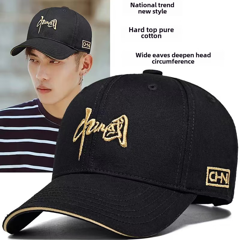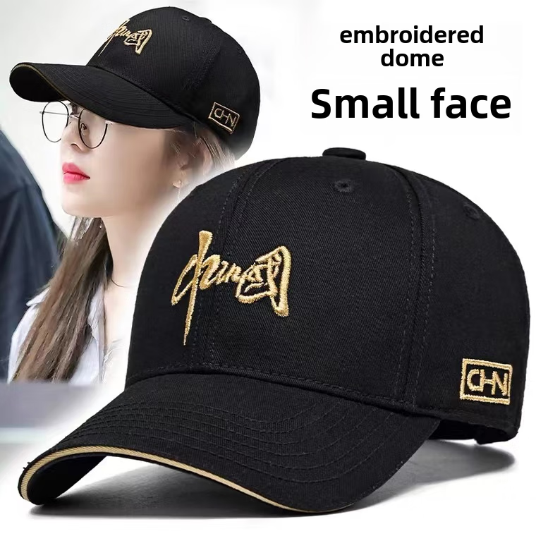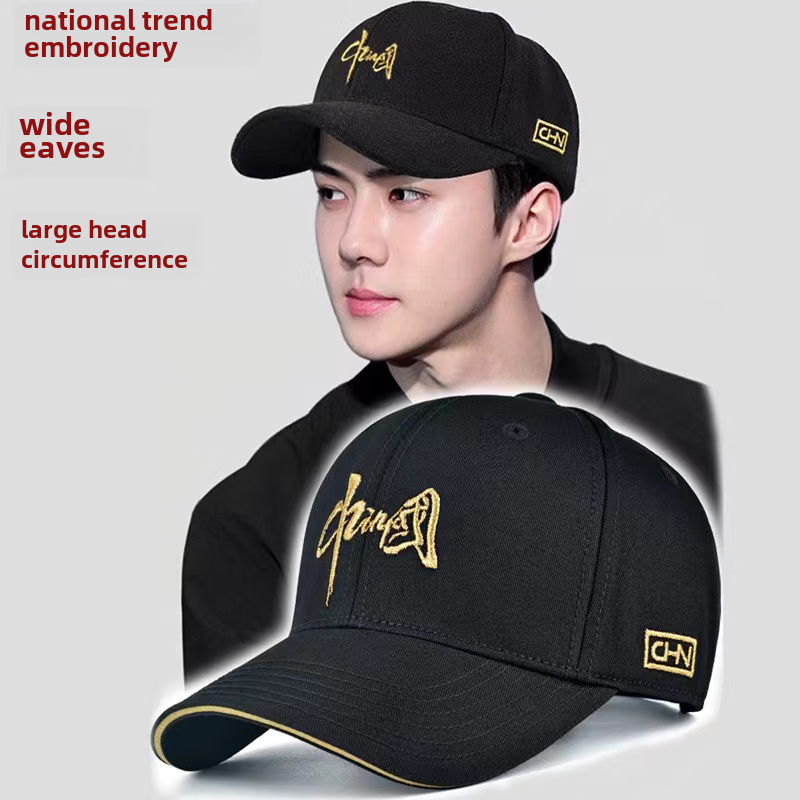 Hat men's wide brim high top large head circumference showing face small fashion multifunctional baseball cap women's fashionable new dome style - China black normal size 55-59 cm hat circumference