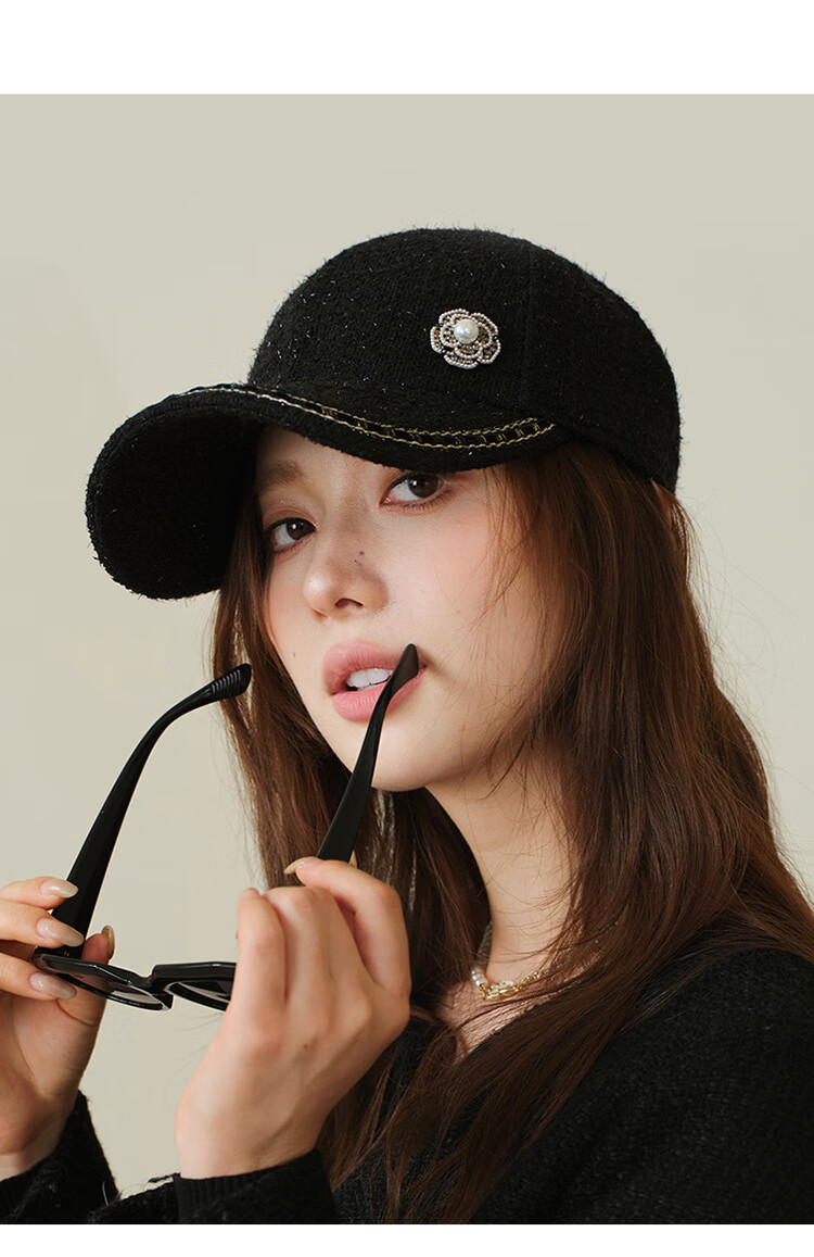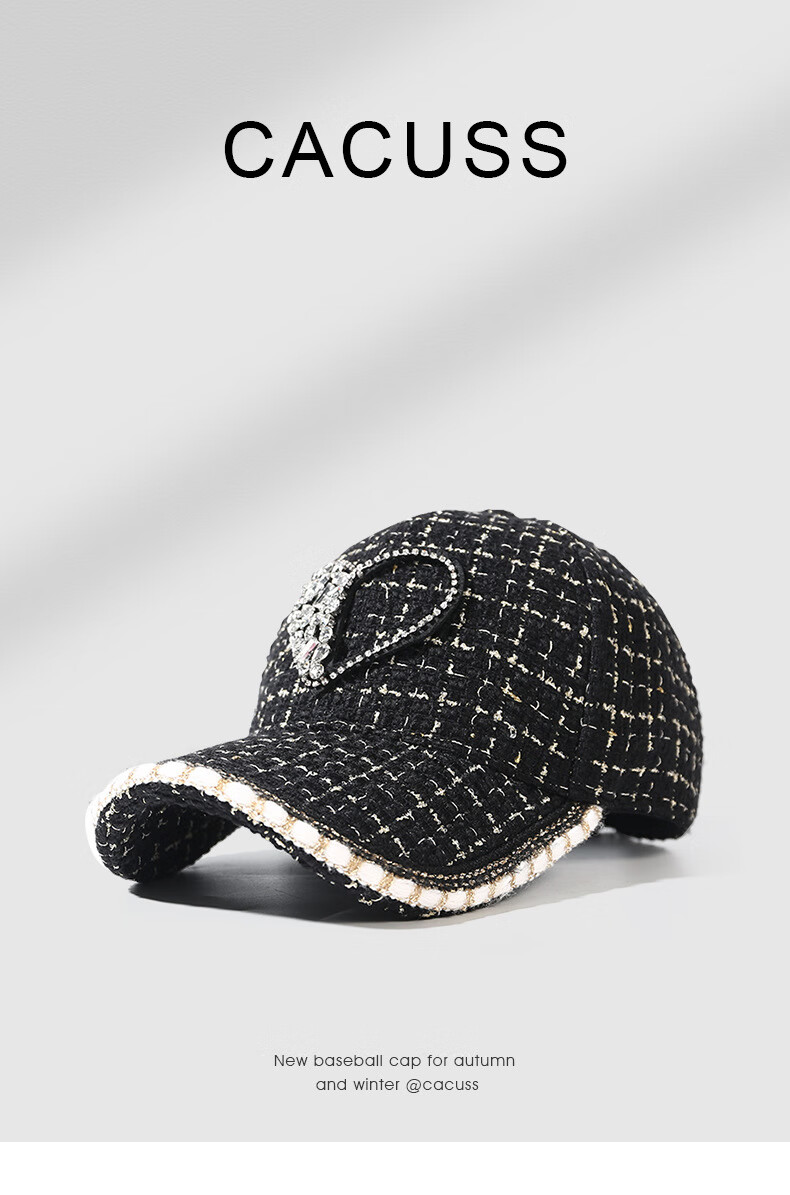 Special Autumn and Winter Small Fragrant Style Baseball Cap for Women Elegant, Fashionable and Versatile Cap, Casual and Versatile, Showing Face Small BQ230737 Black M(57-59cm