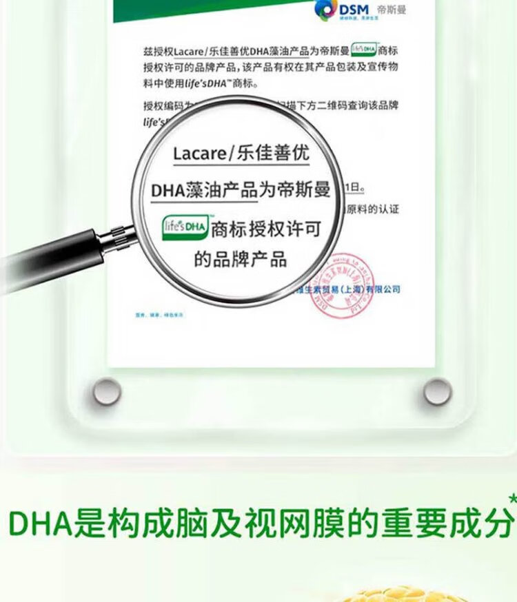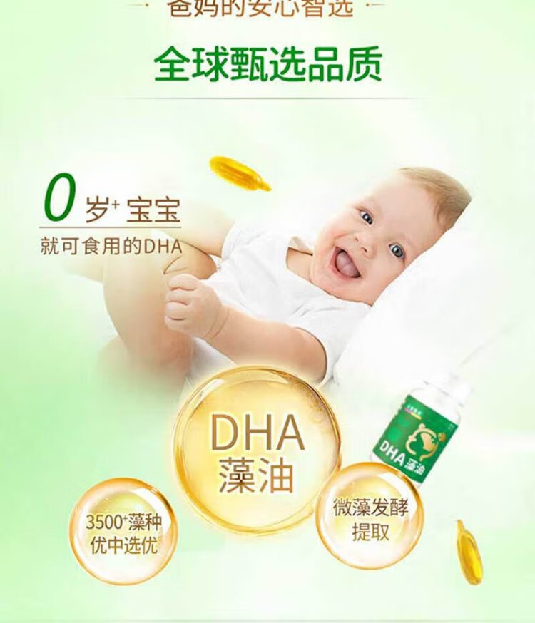Lejiashanyou DHA algae oil 60 capsules/bottle, available for infants, children, students and adults over 0 years old, imported with original packaging