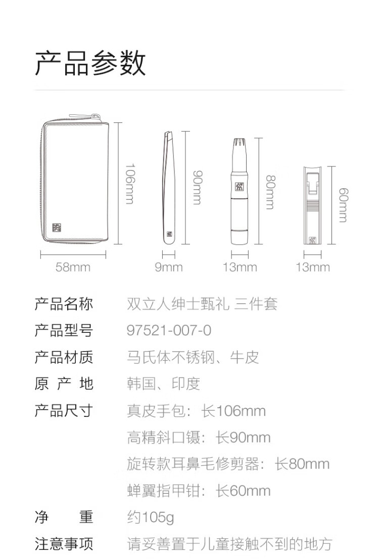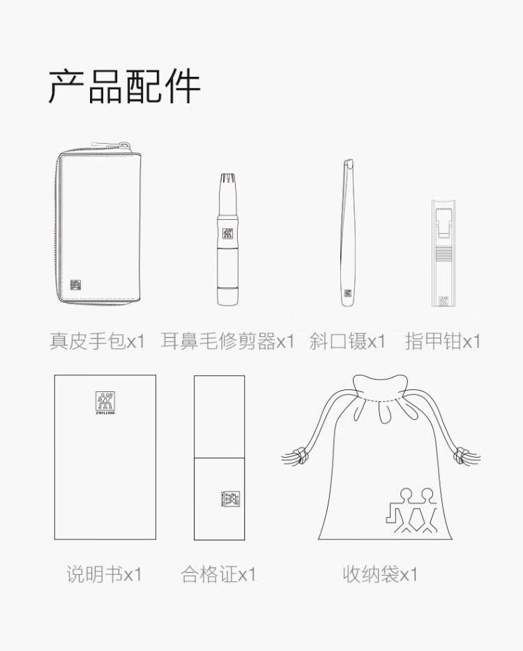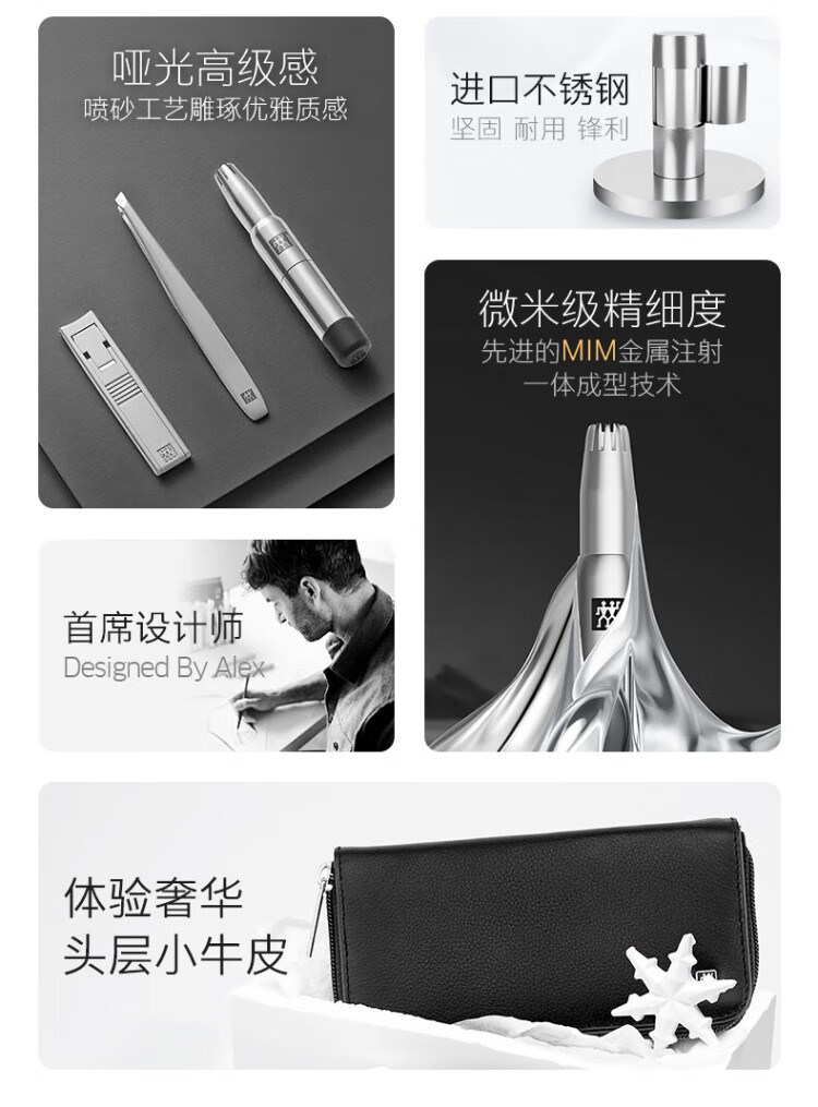 ZWILLING Nail Clipper Set Stainless Steel Nail Clipper Nail Clippers Ear and Nose Hair Trimmer Beard Clip German Genuine Leather for Boyfriend