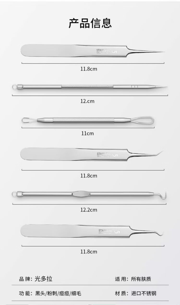 Guangdola cell clip tweezers, blackhead remover, acne needle, acne artifact, pore cleaning tool, 6-piece set