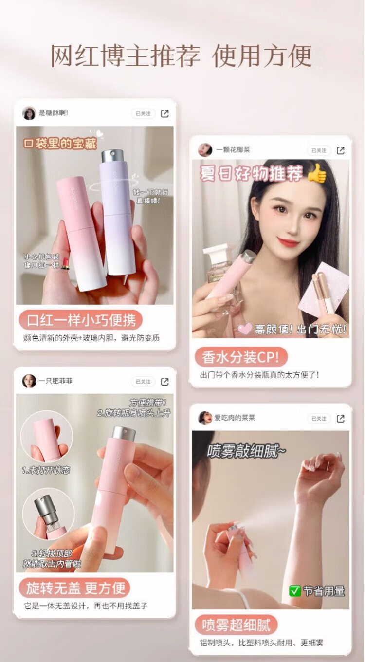 Goody perfume dispensing bottle high-end portable 10ml glass dispensing travel push-type spray empty bottle