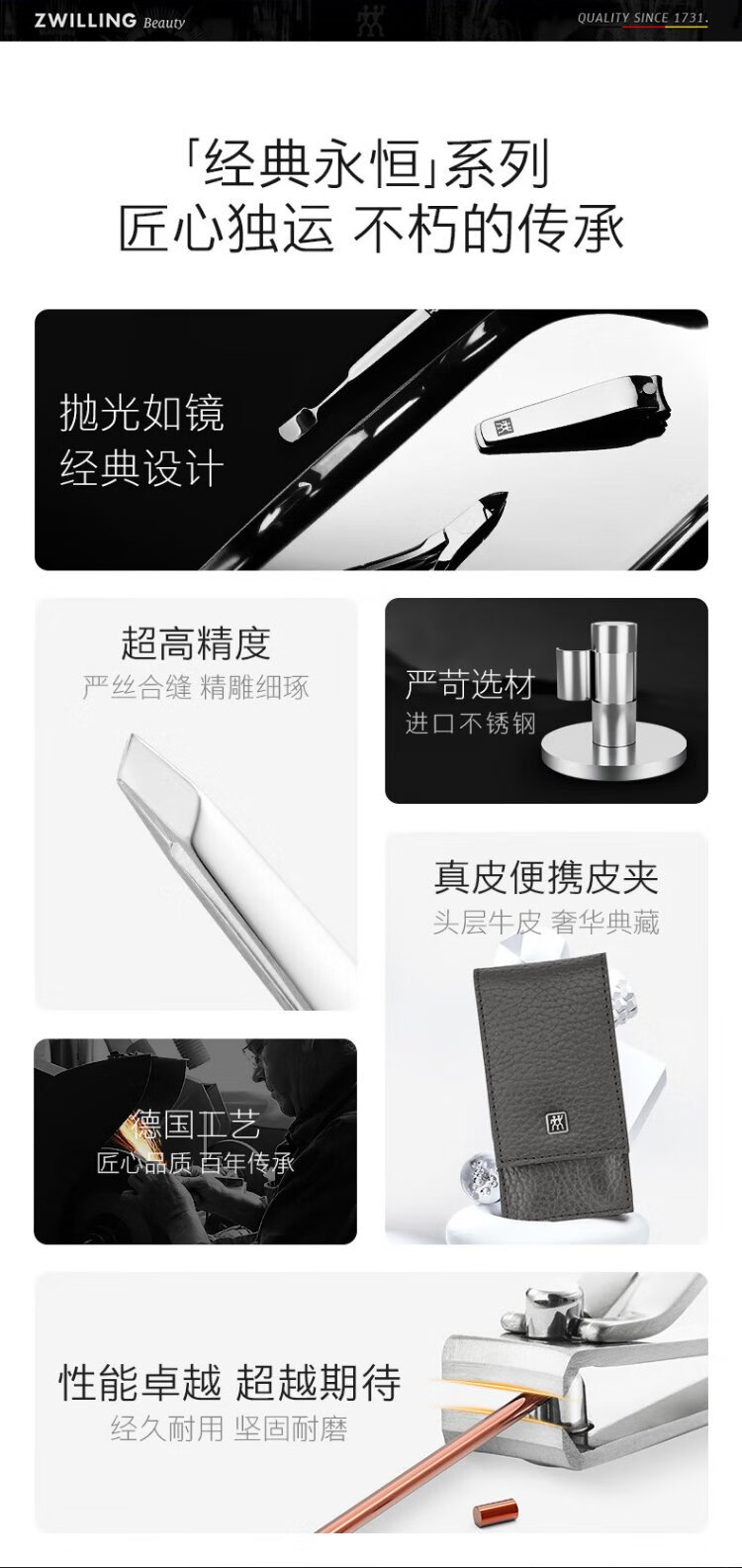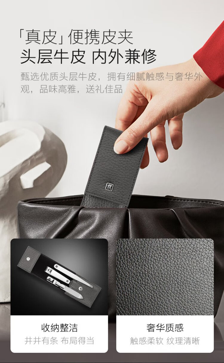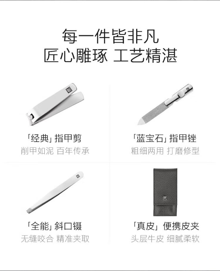 ZWILLING nail clipper set anti-splash nail scissors stainless steel nail clippers nail file eyebrow trimming tweezers German leather gift