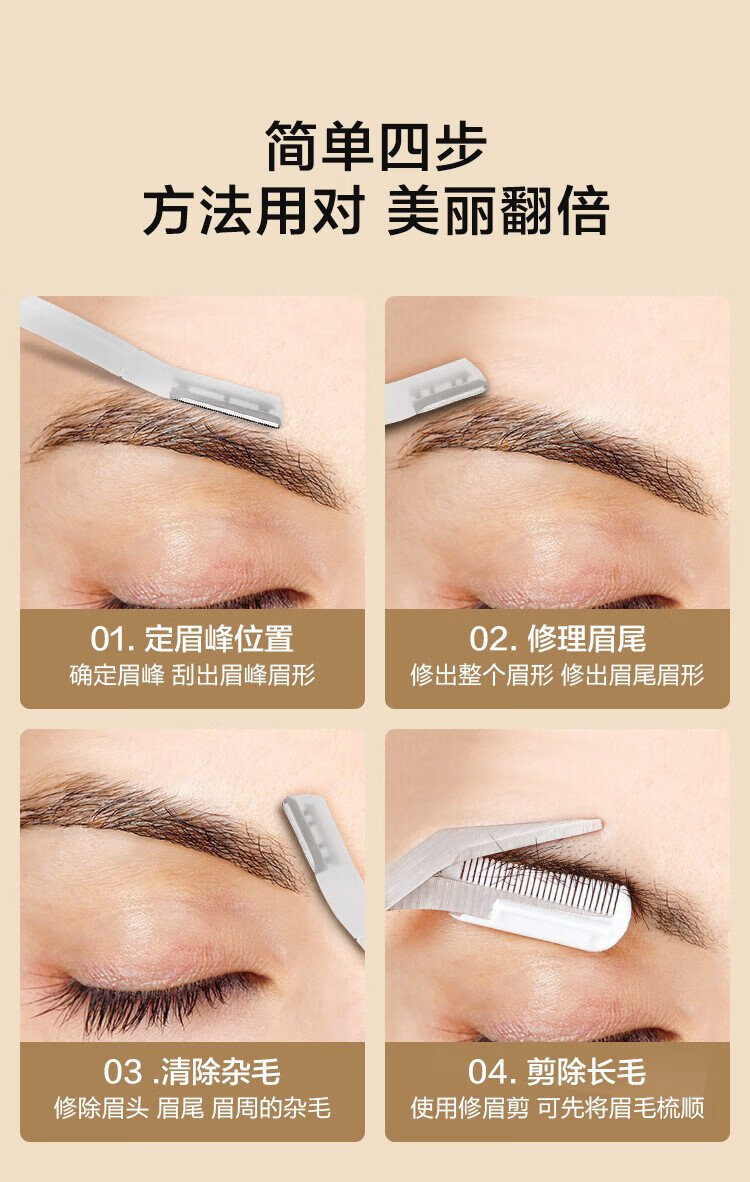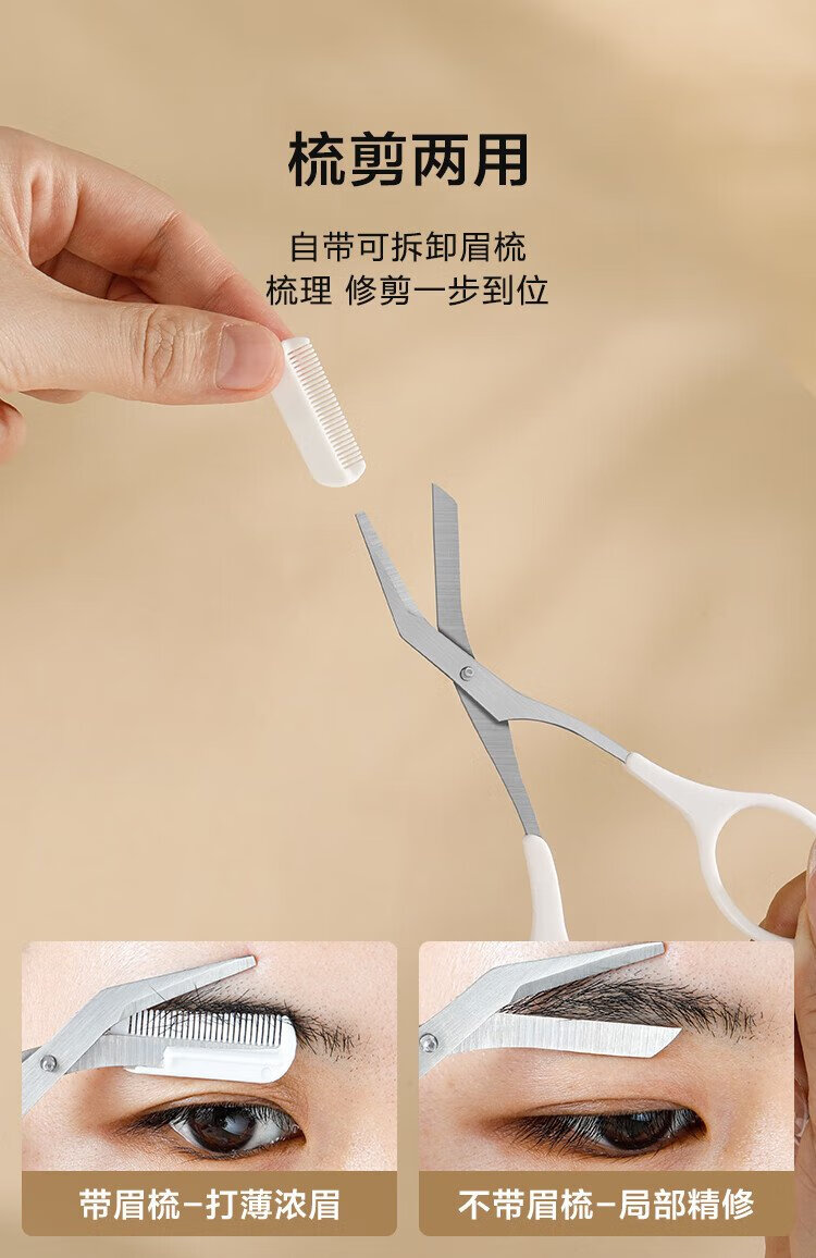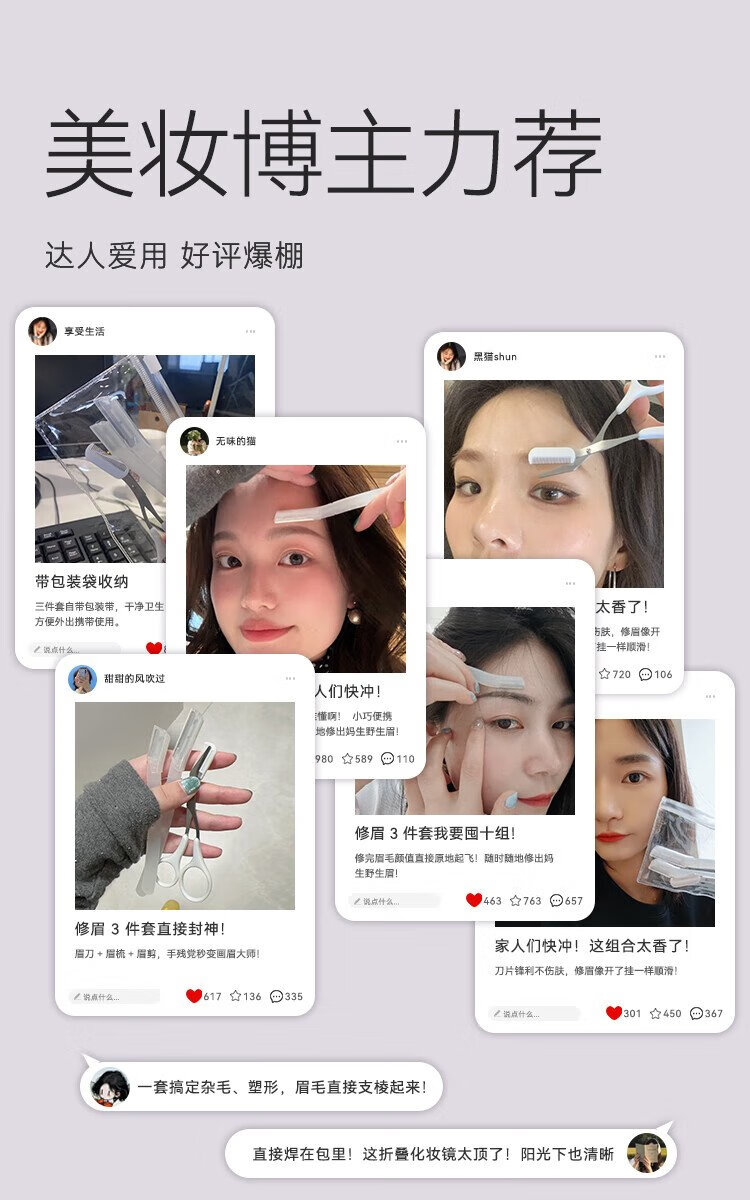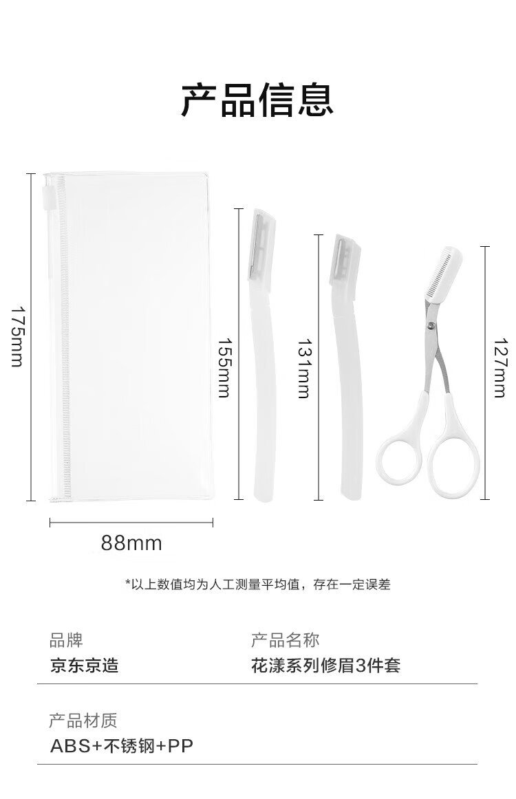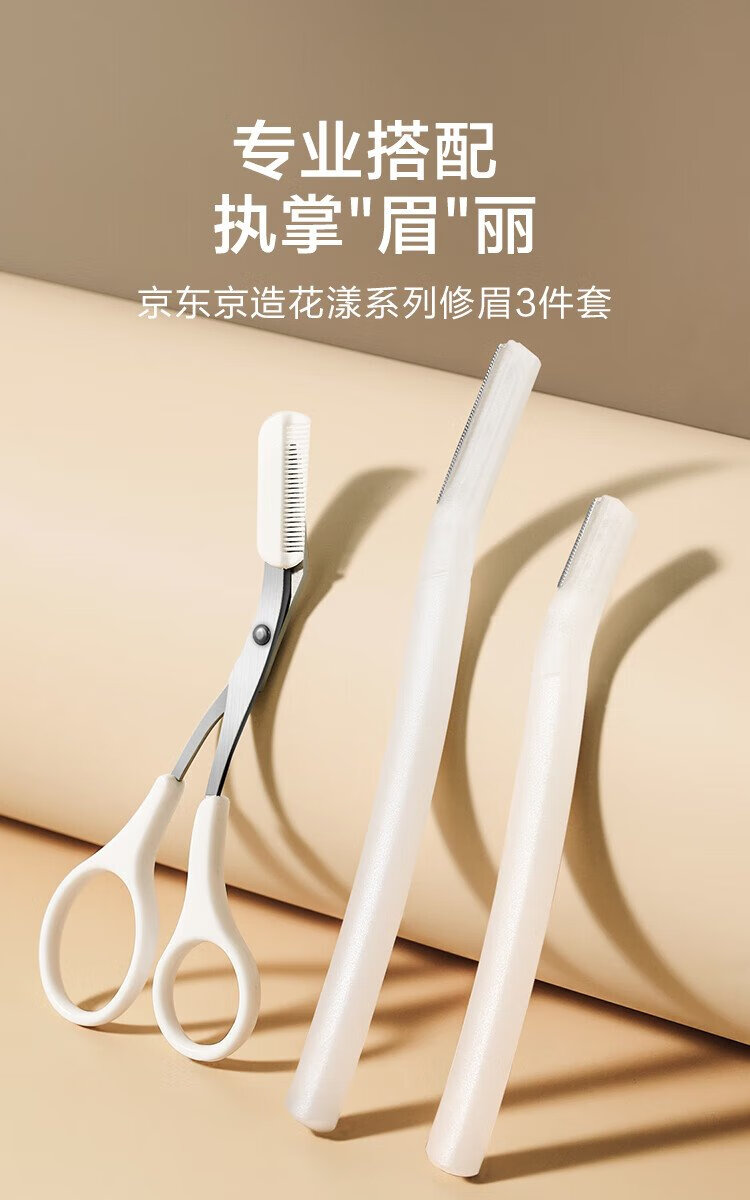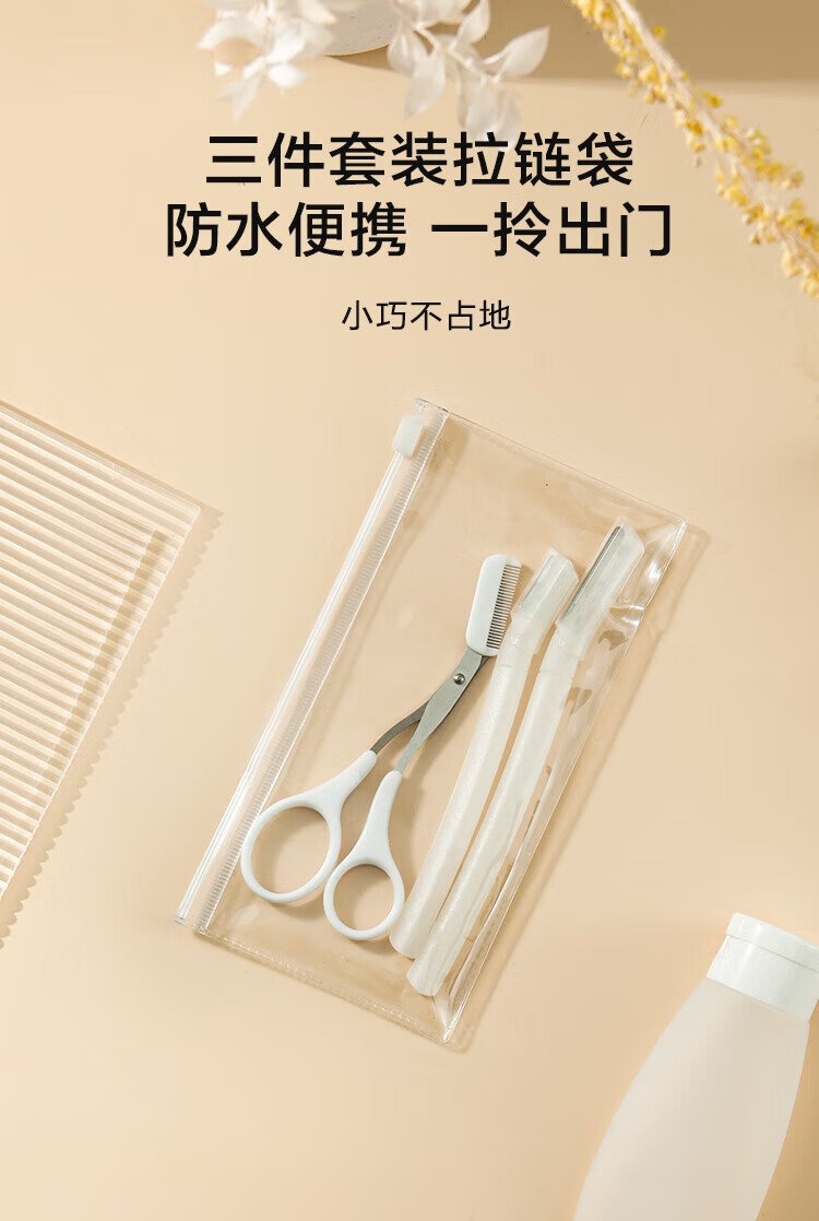 Made in Tokyo, Huayang Series 3-piece eyebrow trimming set for beginners with eyebrow comb, makeup scissors, anti-scratch eyebrow razor