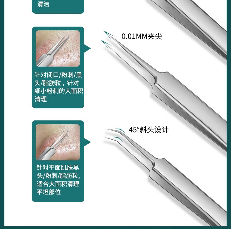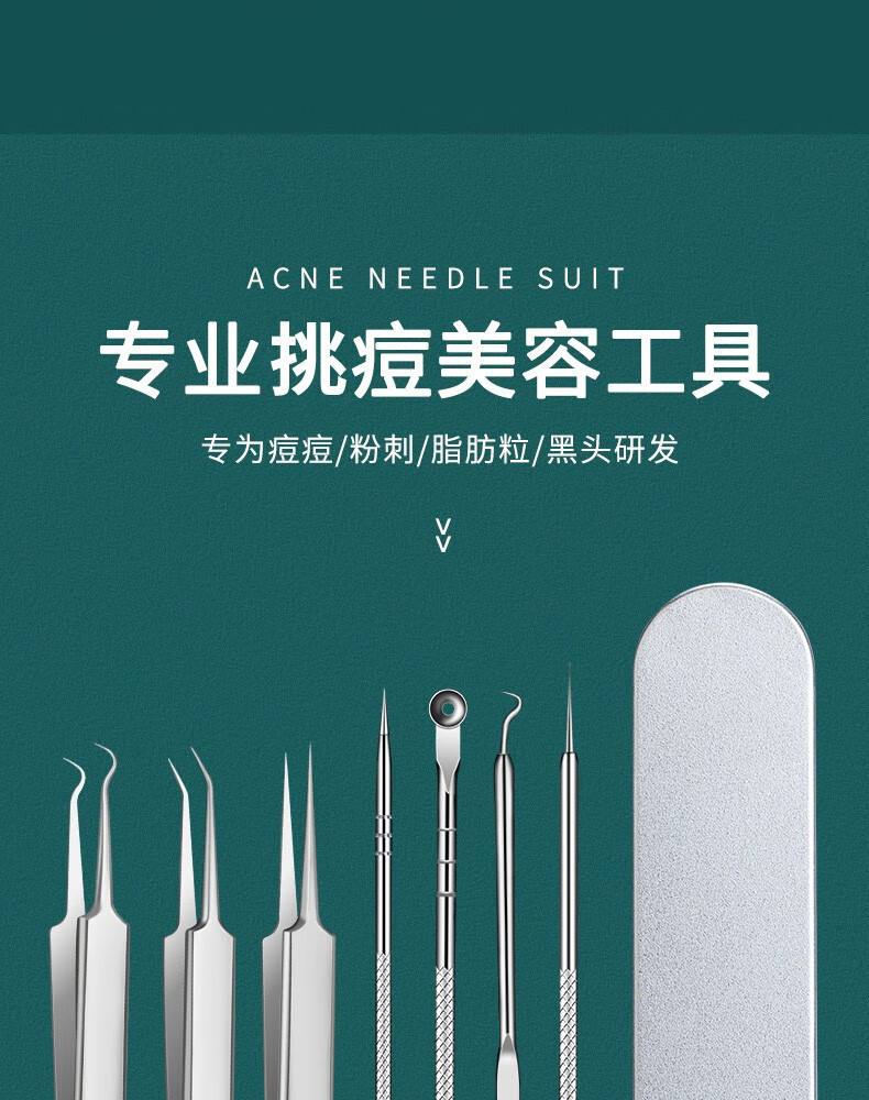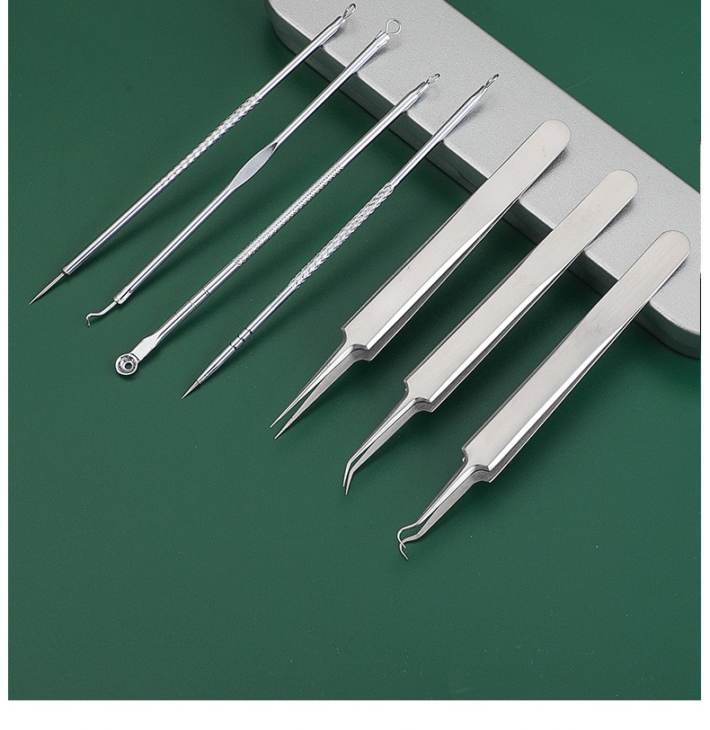XIAO TIAN LAI cell clip acne needle set acne needle blackhead tweezers acne clip closed mouth beauty salon super sharp needle cleaning tool 4-piece acne needle set + 10x mirror + alcohol cotton 1 piece