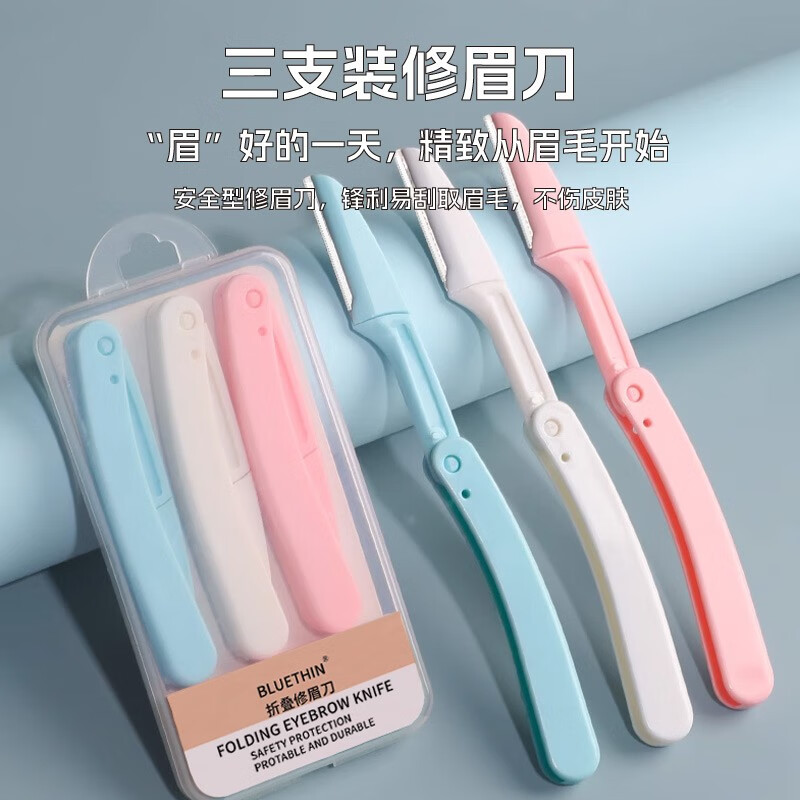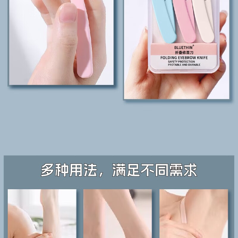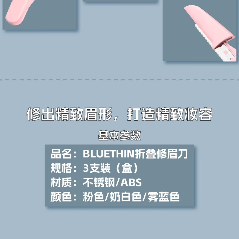 BLUETHIN Folding Eyebrow Trimmer Sharp Lip Shaving Anti-scratch Safety Blade Shaving Blade Set Blue Folding Eyebrow Trimmer 1 piece