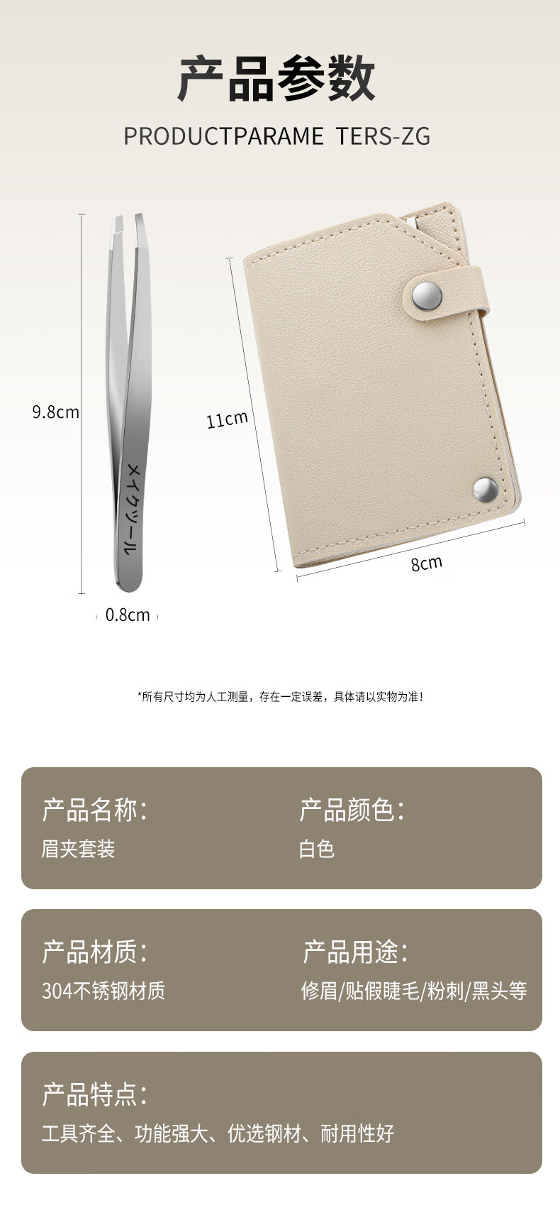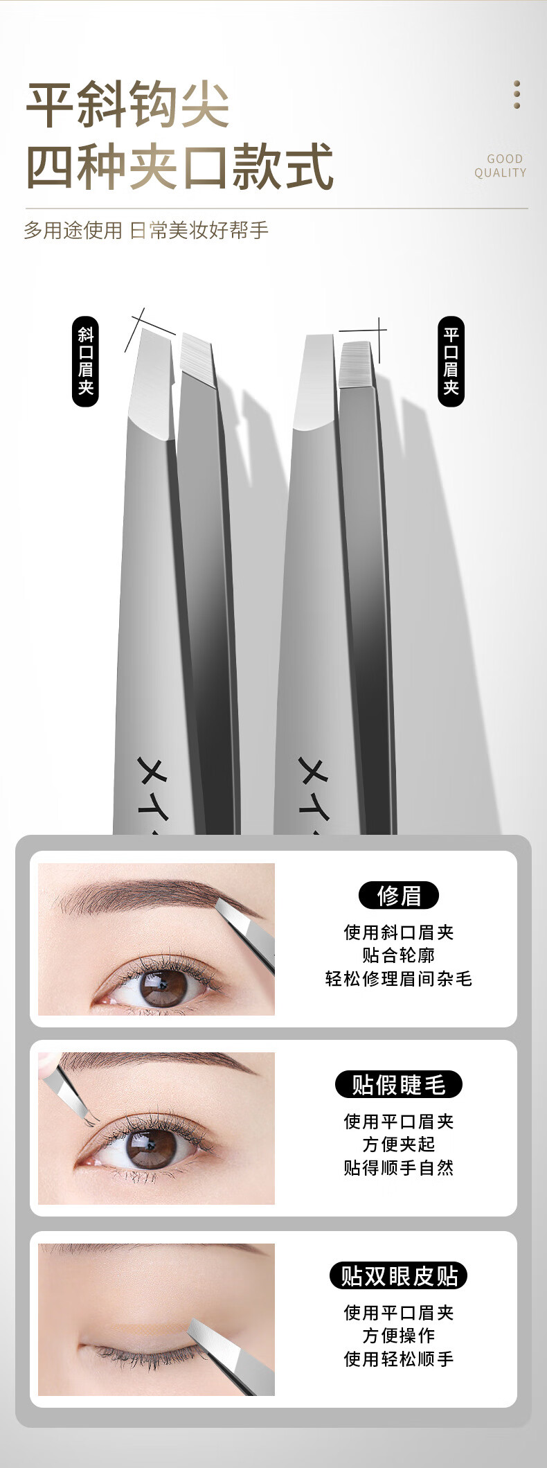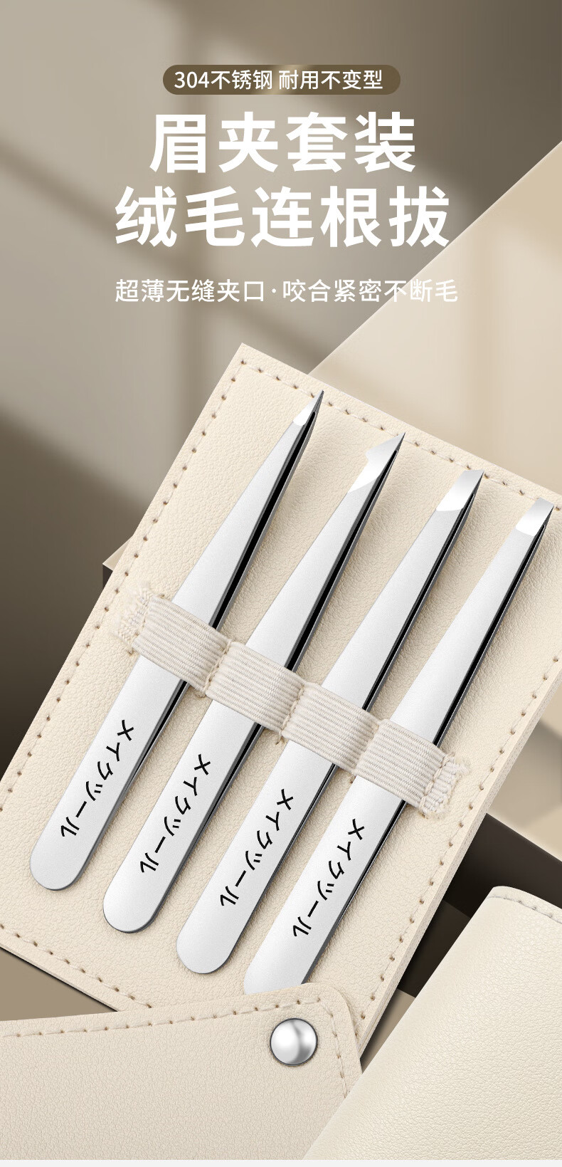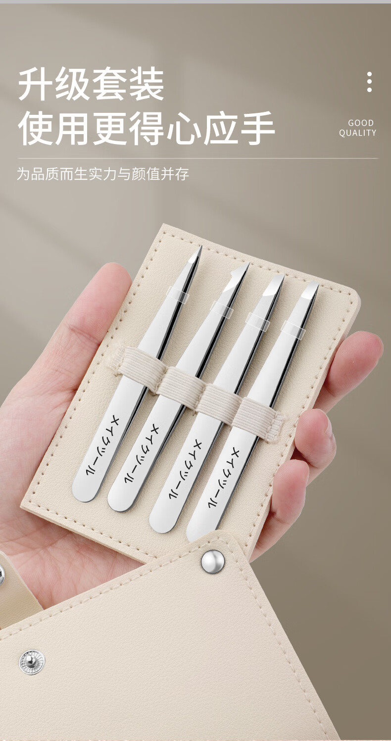 XIAO TIAN LAI 304 Stainless Steel Eyebrow Clip Small Tweezers Special Tools for Beginners to Shape Eyebrows False Eyelash Curler Beard Pulling Set Off-White Rotary Bag 304 Eyebrow Clip Four-piece Set