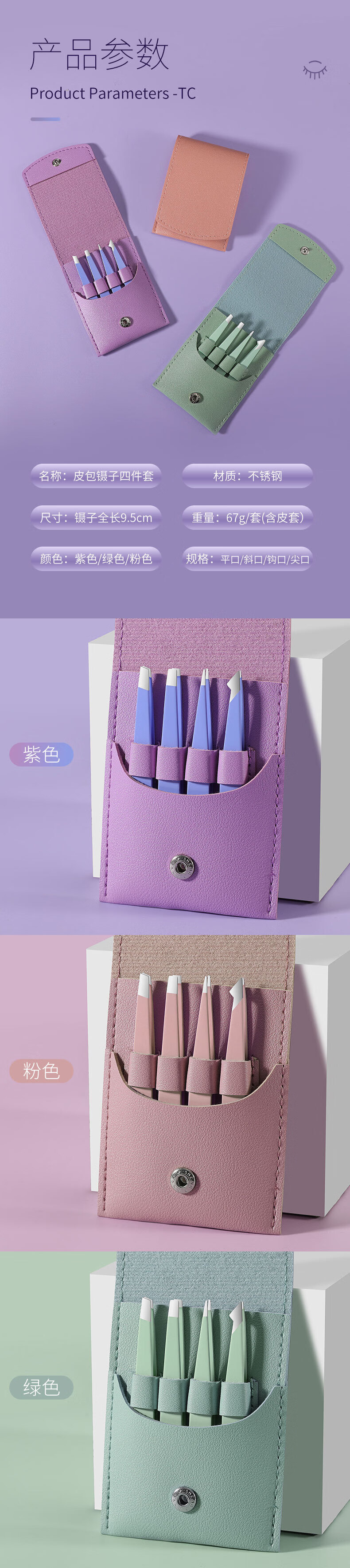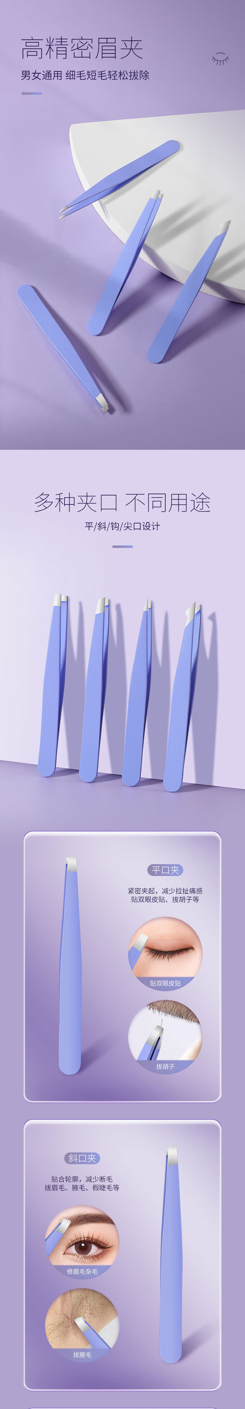 XIAO TIAN LAI eyebrow clip, small tweezers, hair plucking pliers, beard clip, armpit hair clip, white hair clip, double eyelid eyelash clip, pink eyebrow clip four-piece set, free storage bag