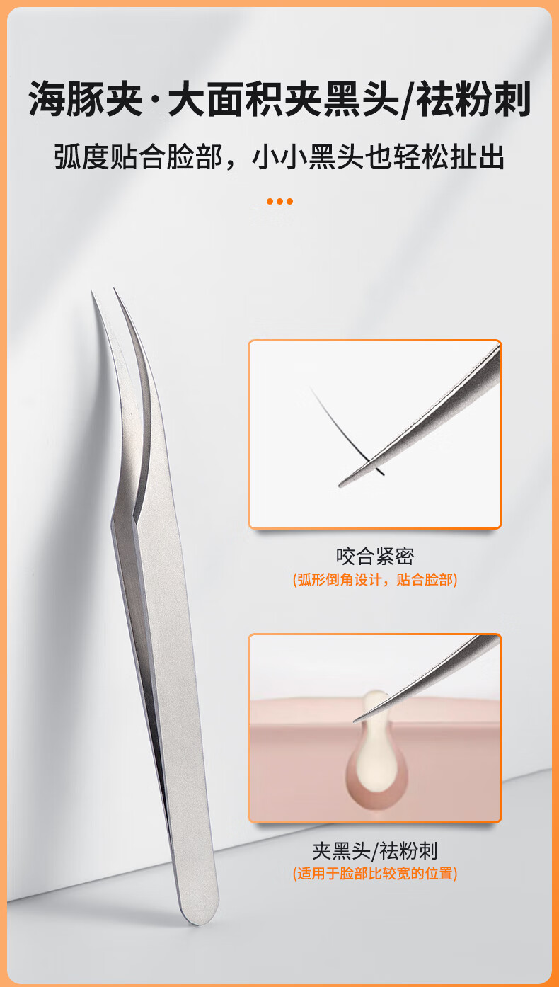 Wako Lisa cell clip, ultra-fine blackhead removal clip, tweezers, high-precision acne clip, beauty salon special acne removal closed mouth beauty tool, elbow frosted dolphin clip, 1 piece (with box)