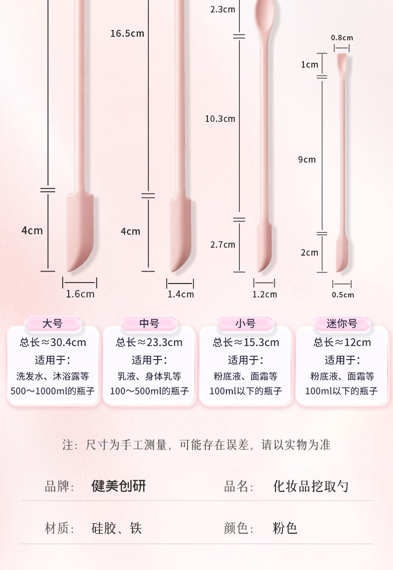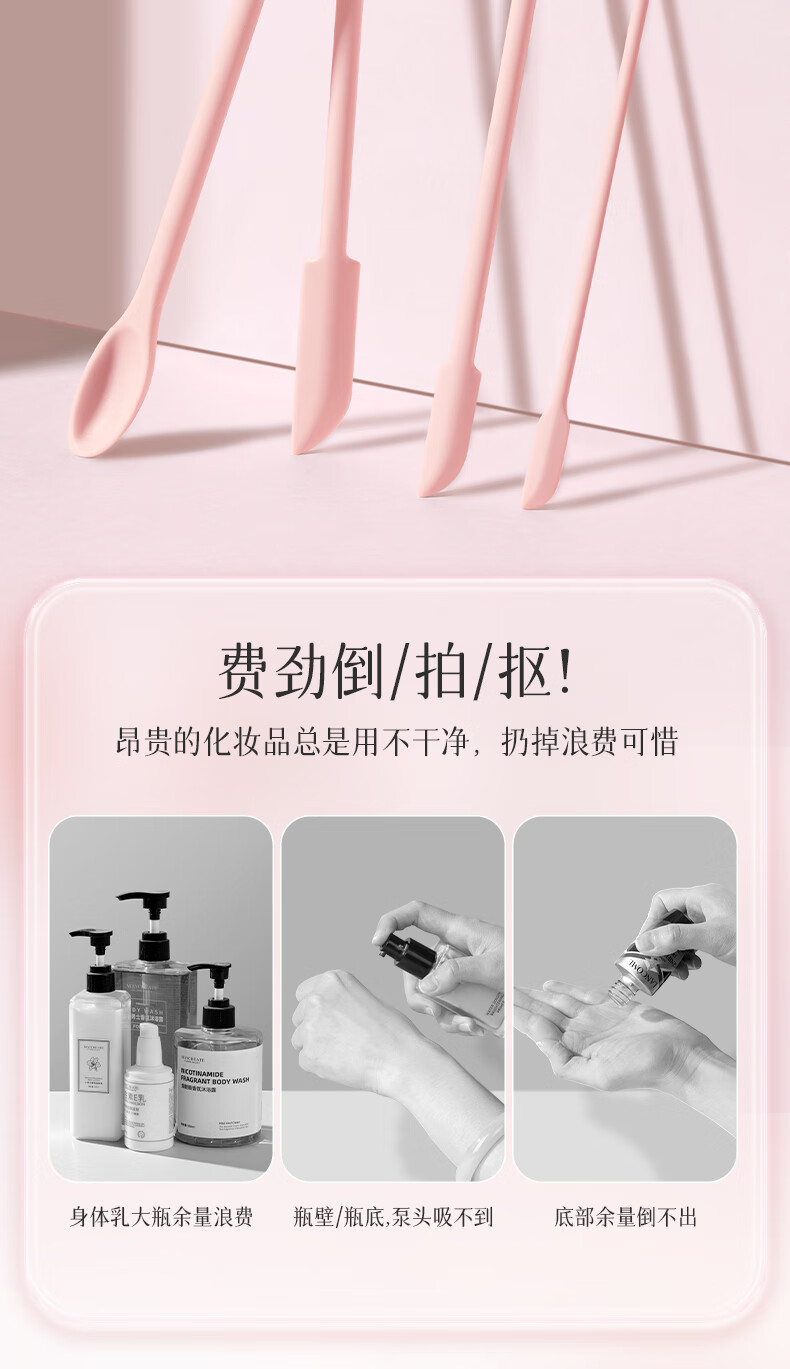 Bodybuilding Chuangyan cosmetics double-headed silicone scooping spoon spatula face cream lotion foundation liquid light bottle artifact small spoon cosmetic scooping spoon 4 pieces (mini + large, medium and small)