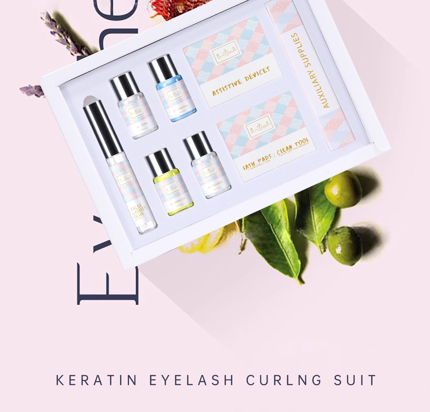 Lavender perm eyelashes keratin set eyelash curling DIY curling cold perm eyelashes gift box eyelash curling technique Barbie curling tool 1 set 1 piece
