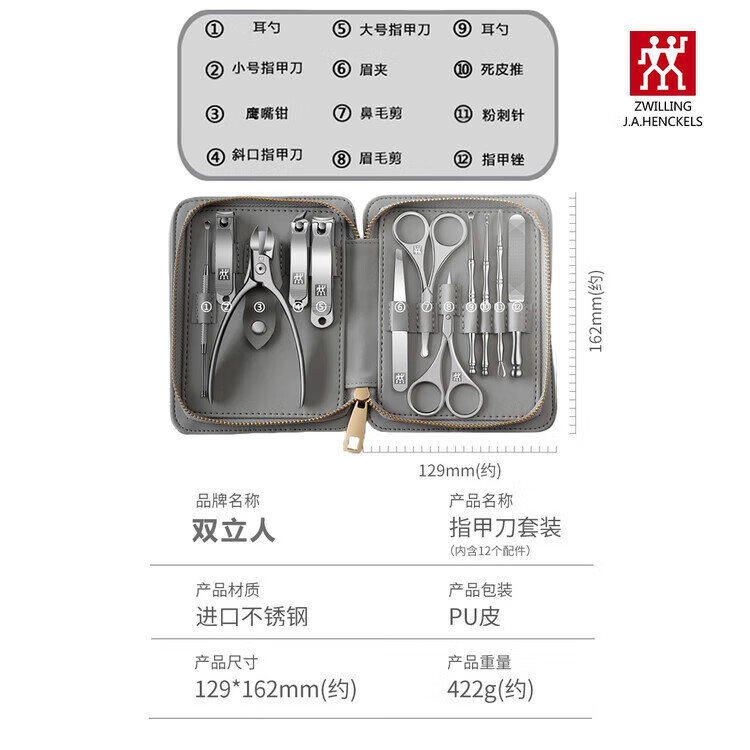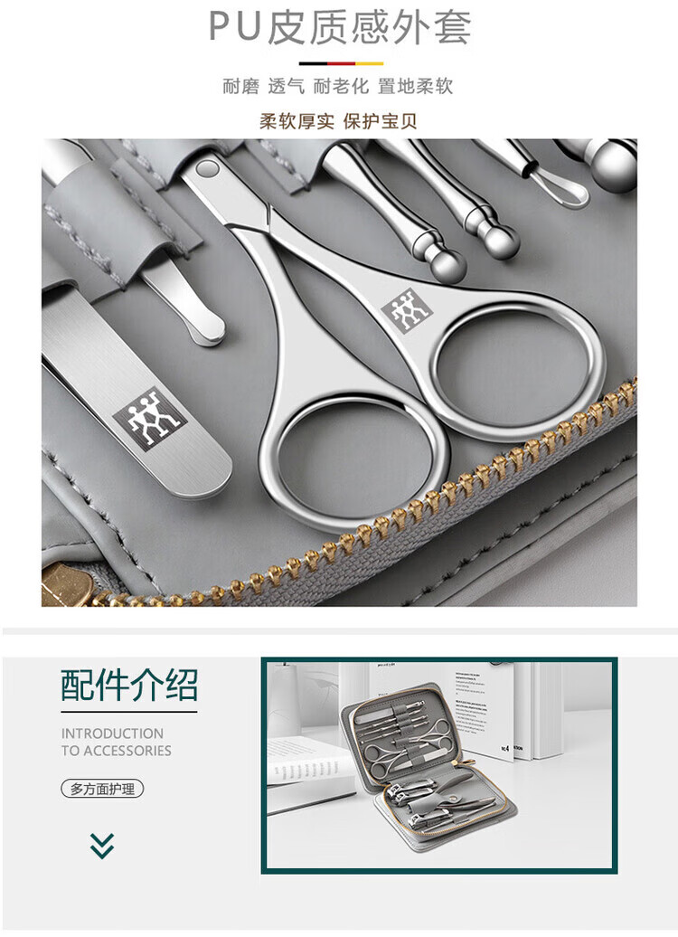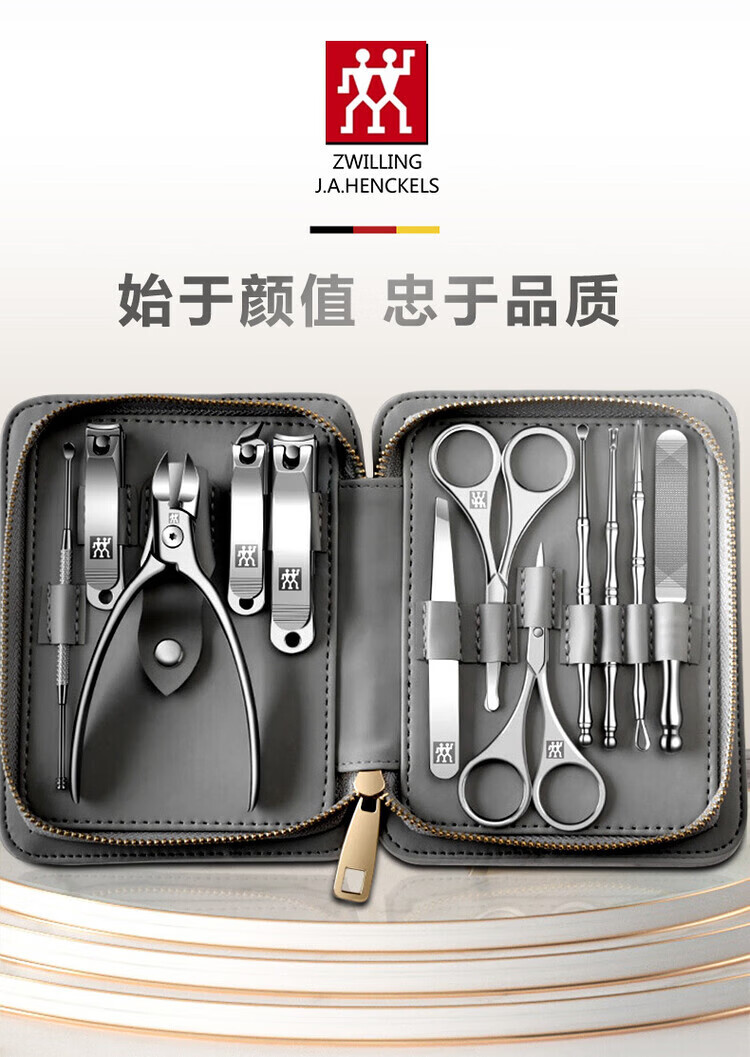 ZWILLING German Zwilling nail clipper set, nail scissors, nail clippers, men's household ear scoop, high-end complete set, male model, eight-piece set (nose hair clipper) 1 piece