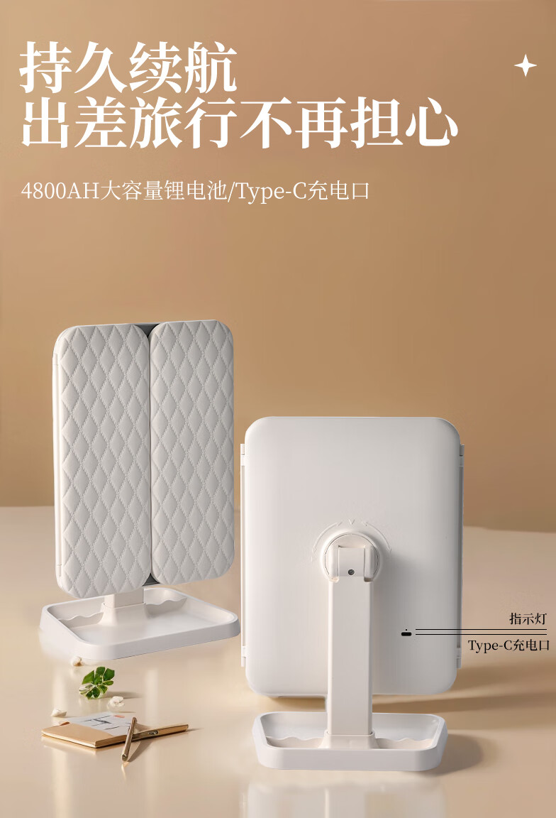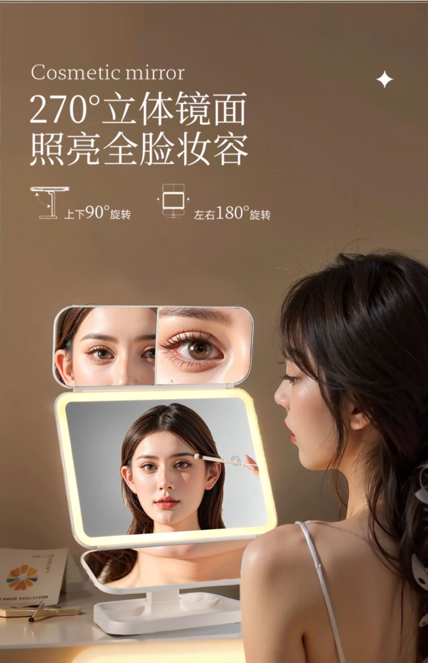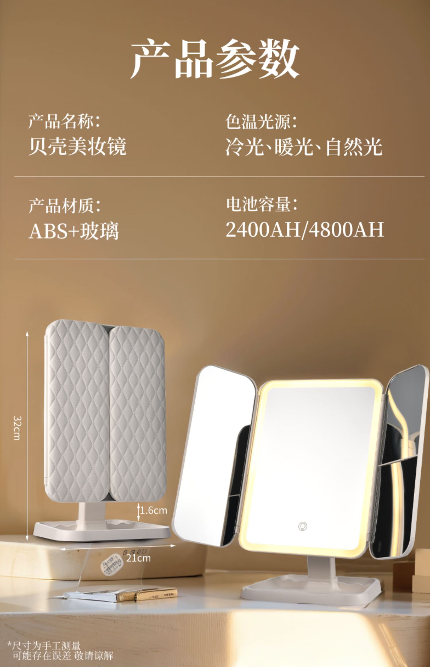 CEFERA Makeup Mirror with Light Mirror Beauty Mirror Vanity Mirror Shell Mirror Desktop Mirror Princess Mirror Birthday Gift for Girlfriend New Eye Protection Light - Extra Large Exquisite Milk White 270 Super Wide Angle 1 piece