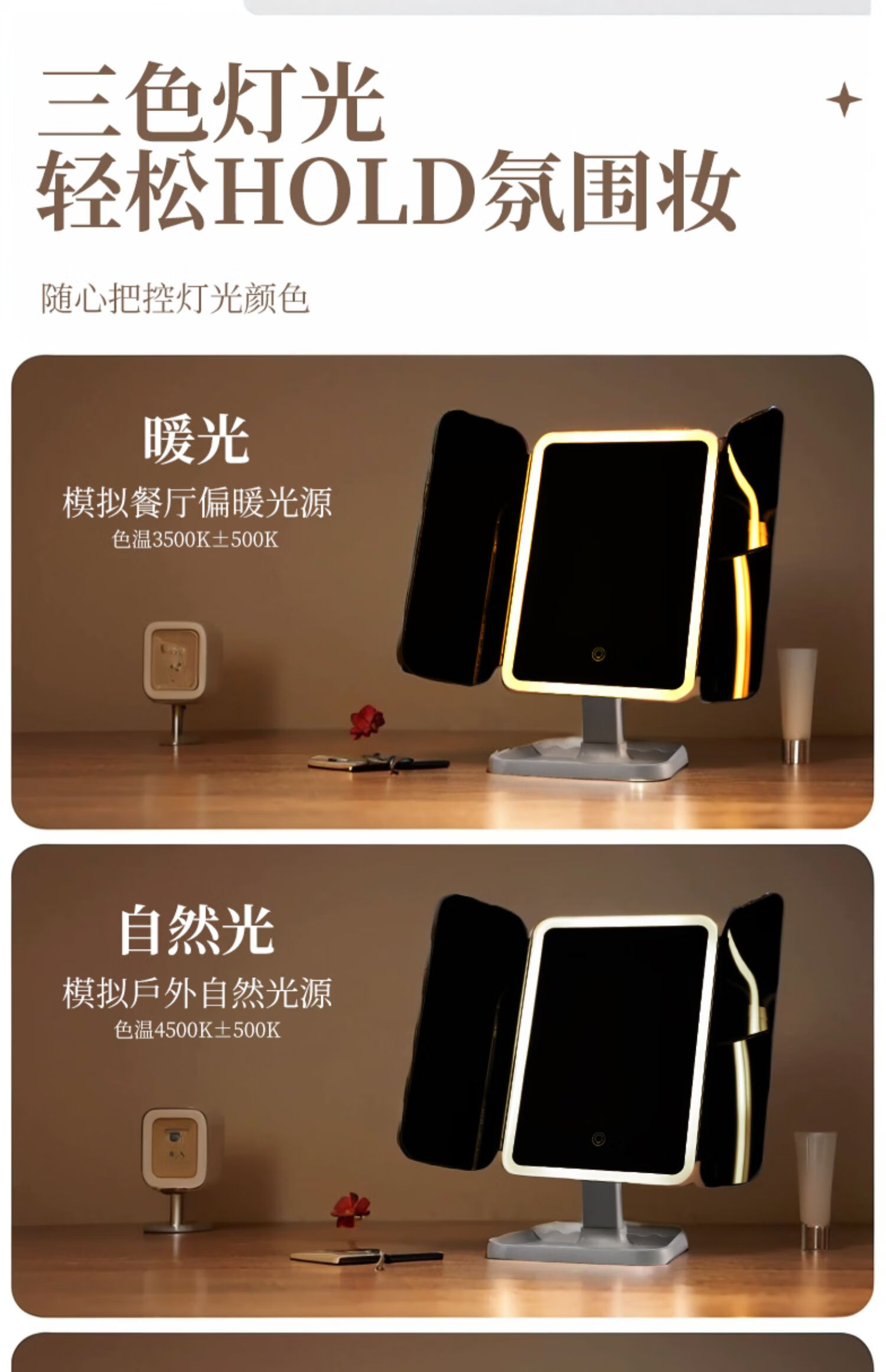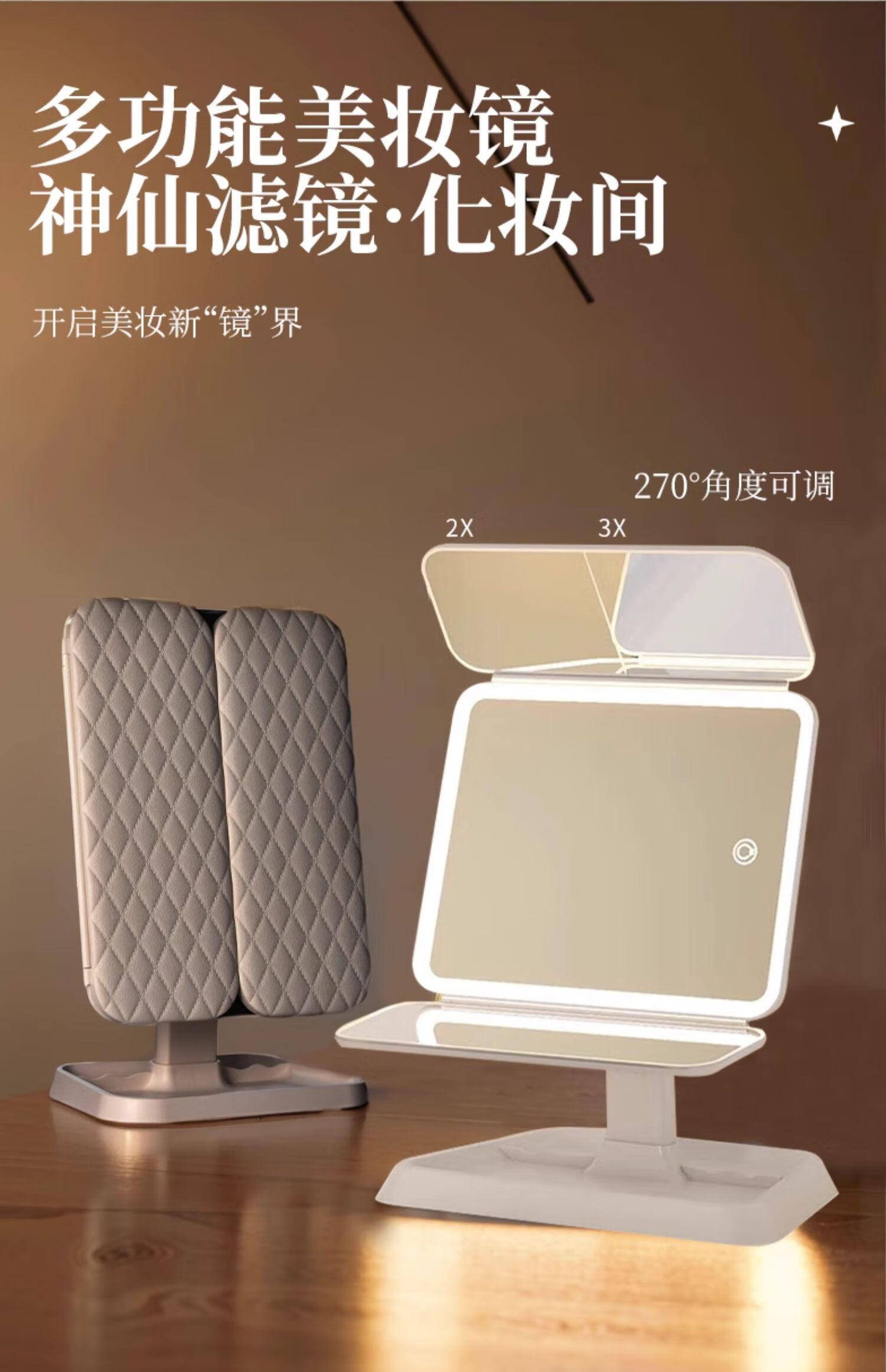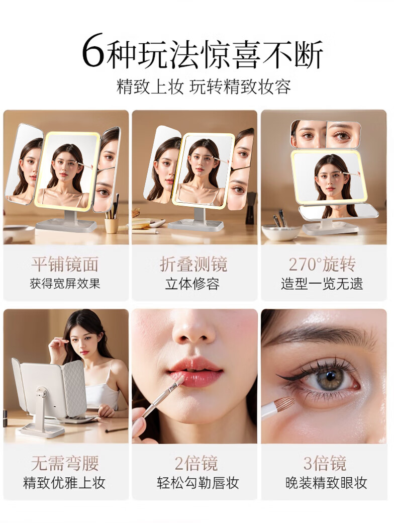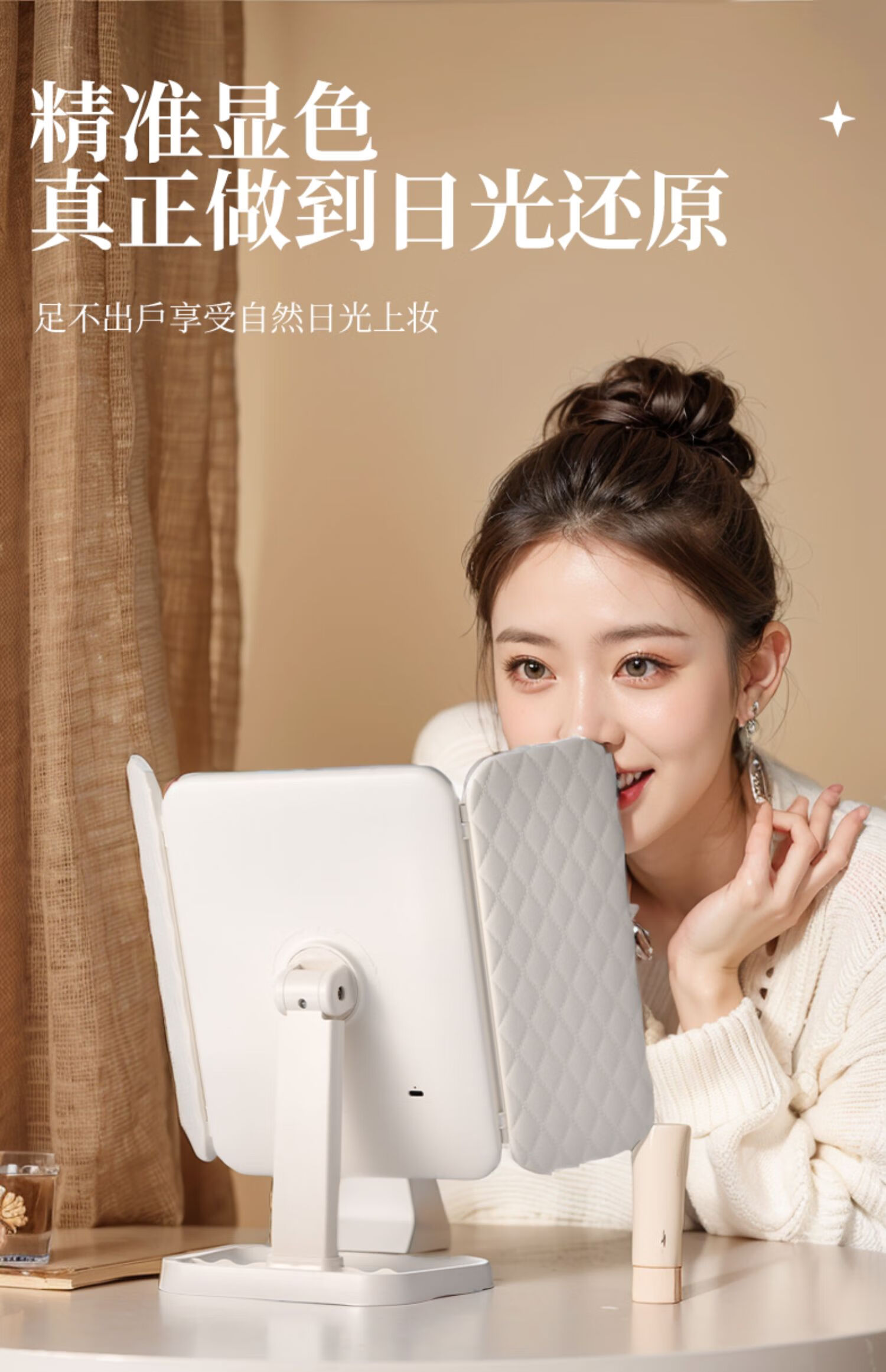 CEFERA Makeup Mirror with Light Mirror Beauty Mirror Vanity Mirror Shell Mirror Desktop Mirror Princess Mirror Birthday Gift for Girlfriend New Eye Protection Light - Extra Large Exquisite Milk White 270 Super Wide Angle 1 piece