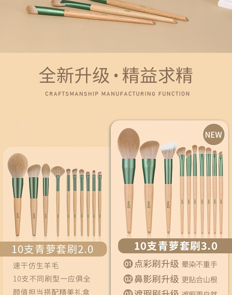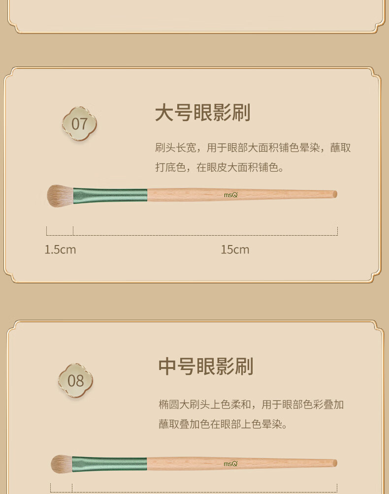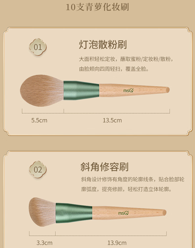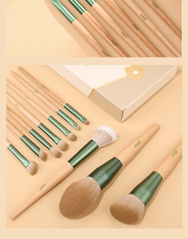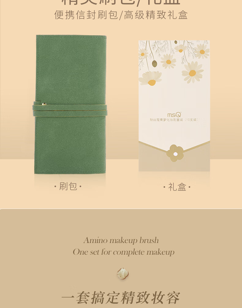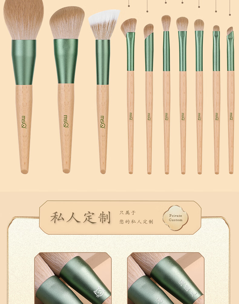 MSQ Private 10-Piece Qingluo Makeup Brush Set Blush Loose Powder Eyeshadow Brush Beauty Tool Qingluo-Standard Edition (Nude Brush + Gift Box) 10 PCs Man-made Fiber