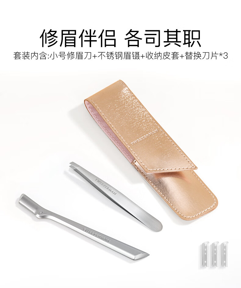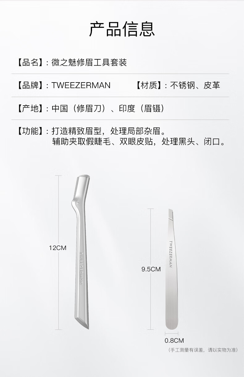 Tweezerman eyebrow trimming knife, safe anti-scratch eyebrow clip, hair plucking pliers, stainless steel tweezers, eyebrow trimming set, large eyebrow tweezers/small eyebrow trimming knives, 2 pieces