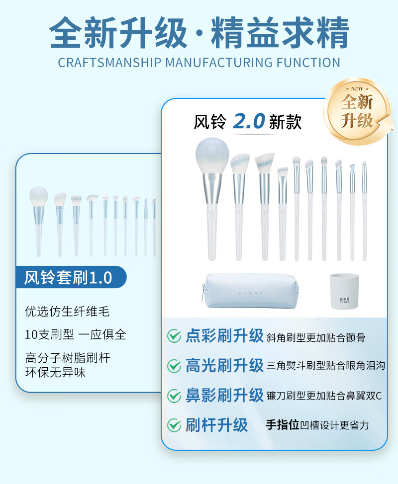 LADES (LADES) Ready in stock LADES/LADES Wind Chime 10 Makeup Brush Set Eye Shadow Concealer Brush Animal Hair Xian Mu (Xianmu Co-branded) 11 PCs Other Materials