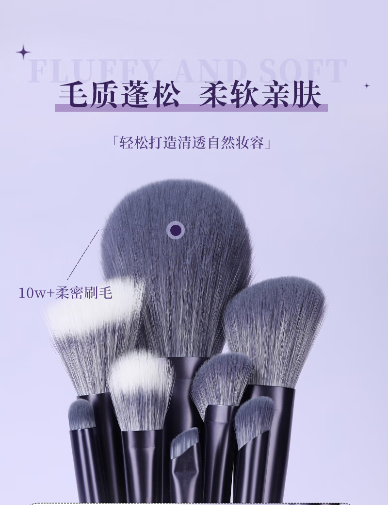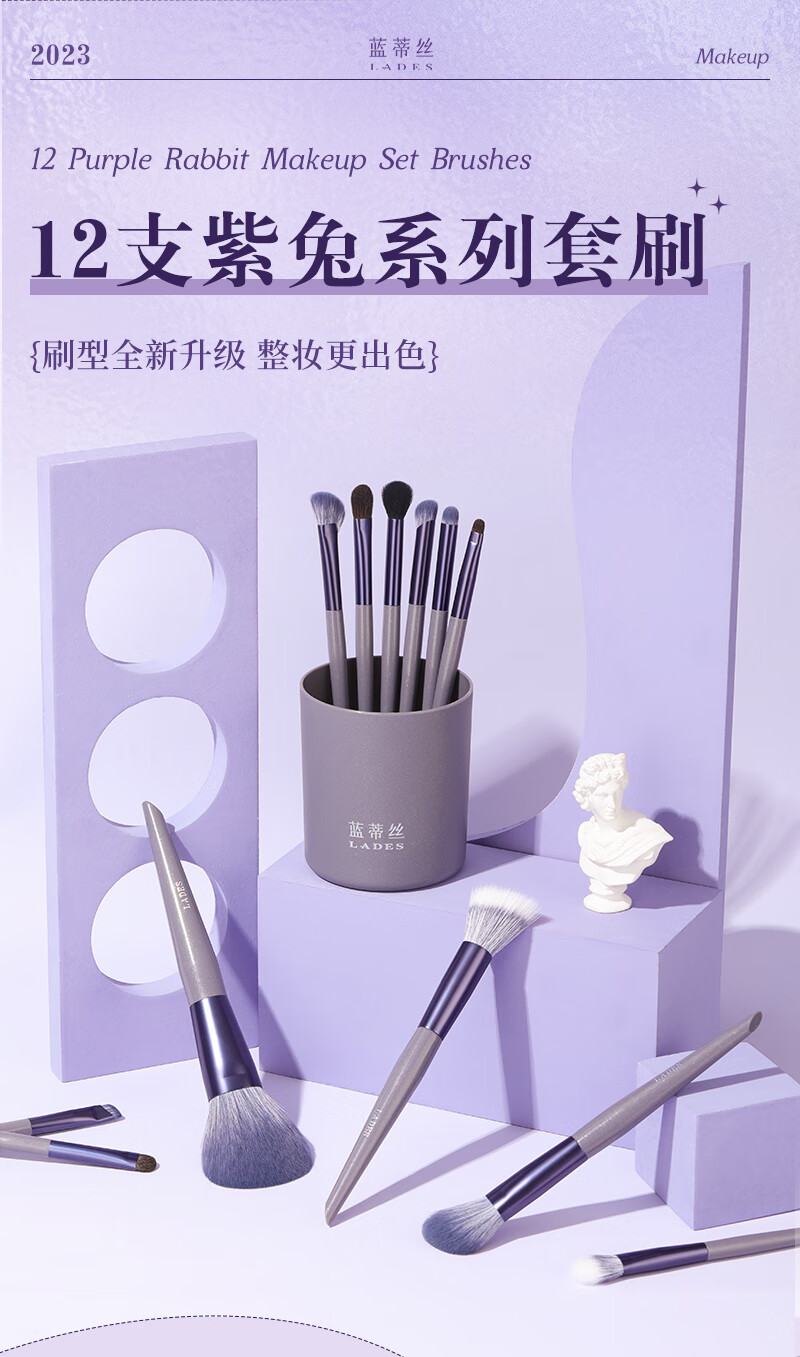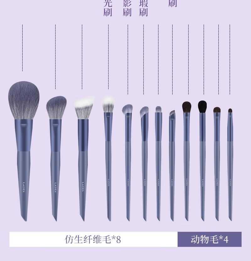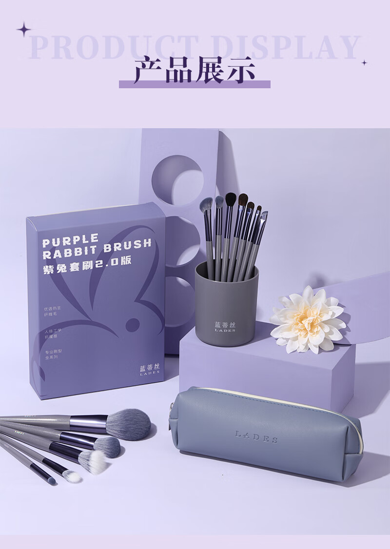 LADES/LADES Purple Rabbit 12 Makeup Brush Set Eyeshadow Powder Blush Brush Soft Hair Makeup Brush Tool Eye Brush Animal Hair Purple Rabbit Brush Set 12 Other Materials
