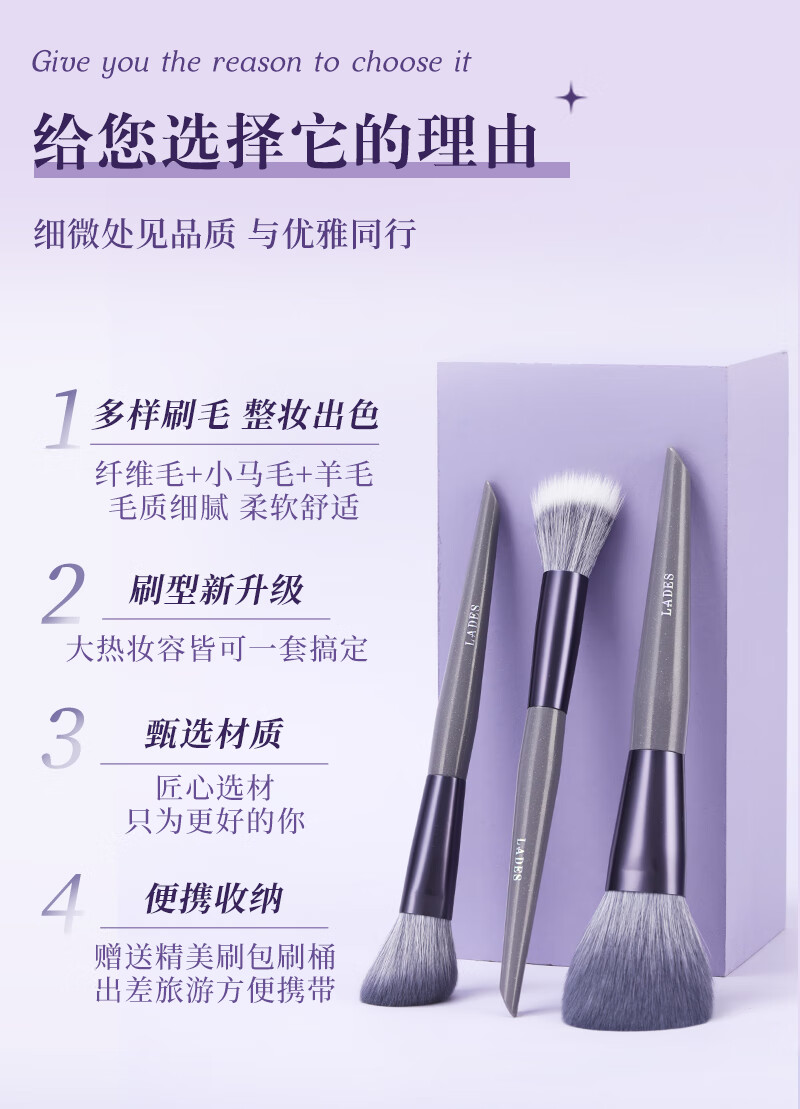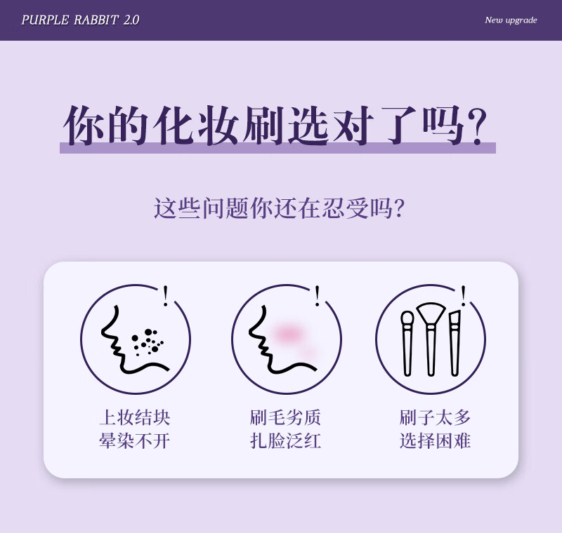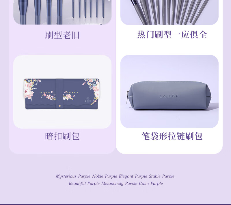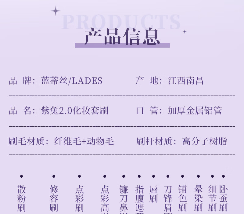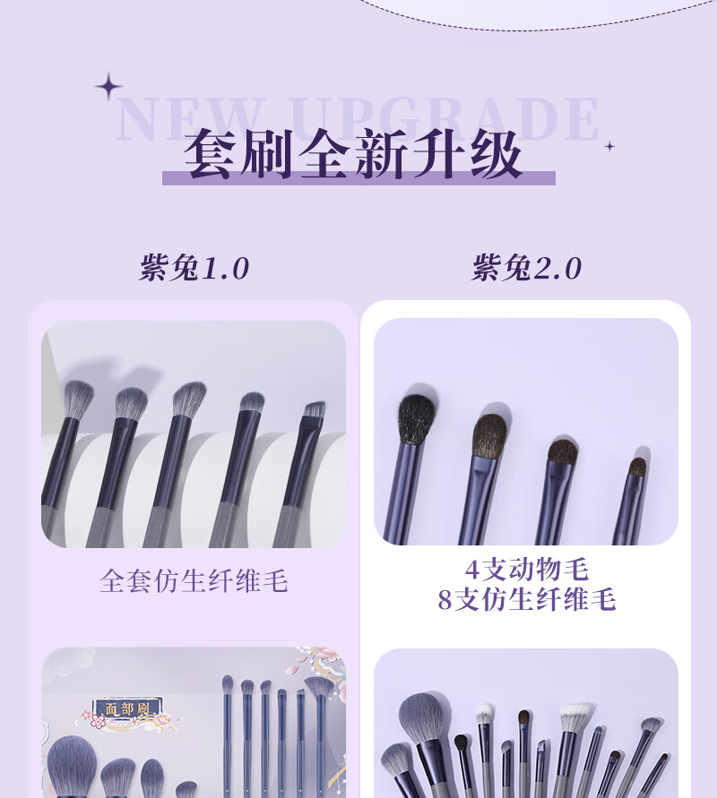 LADES/LADES Purple Rabbit 12 Makeup Brush Set Eyeshadow Powder Blush Brush Soft Hair Makeup Brush Tool Eye Brush Animal Hair Purple Rabbit Brush Set 12 Other Materials