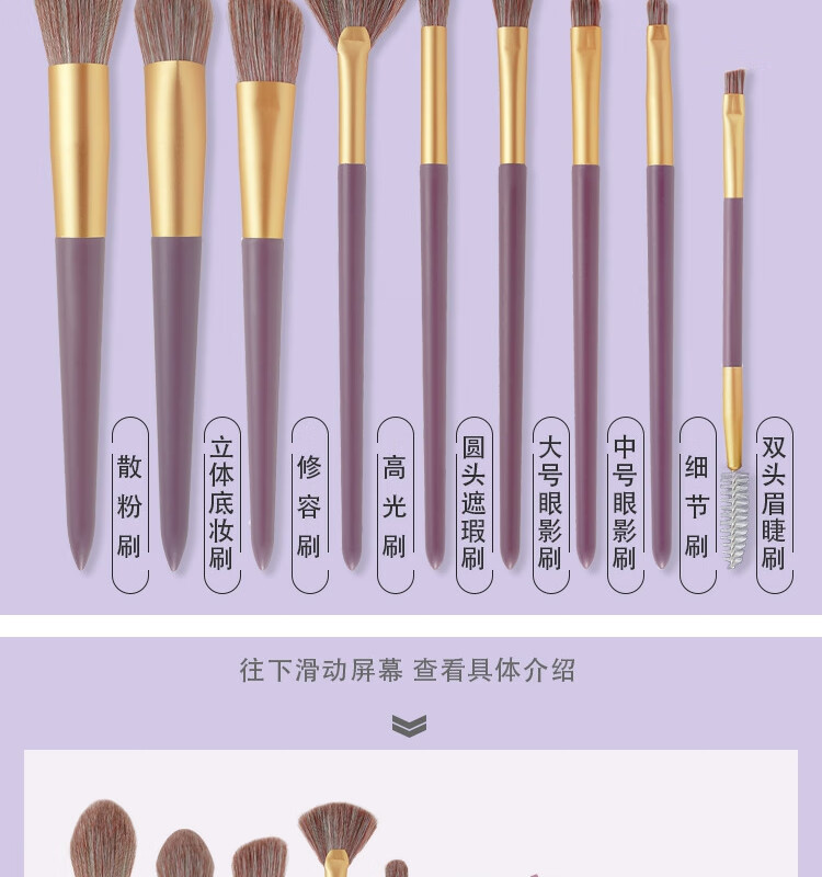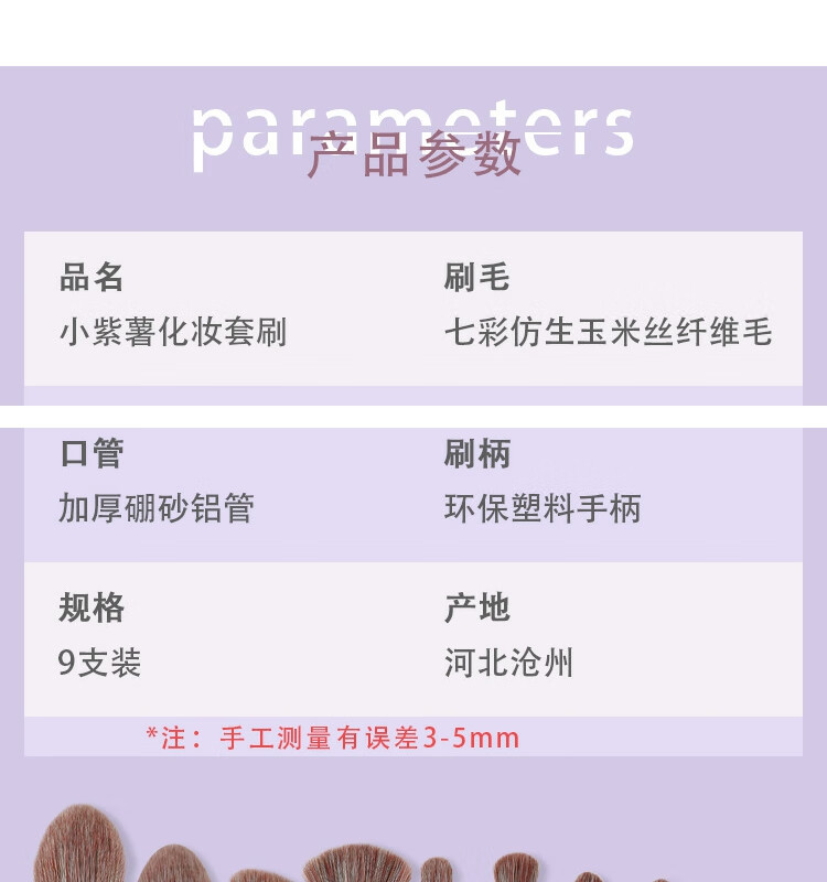 9 pieces of small purple sweet potato makeup brush set, soft-bristled eye shadow brush, loose powder brush, concealer brush, beauty brush, full set of brushes, 9 pieces of small purple sweet potato, 9 pieces of small purple sweet potato