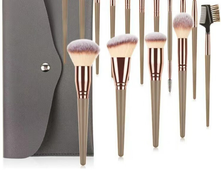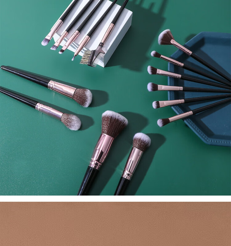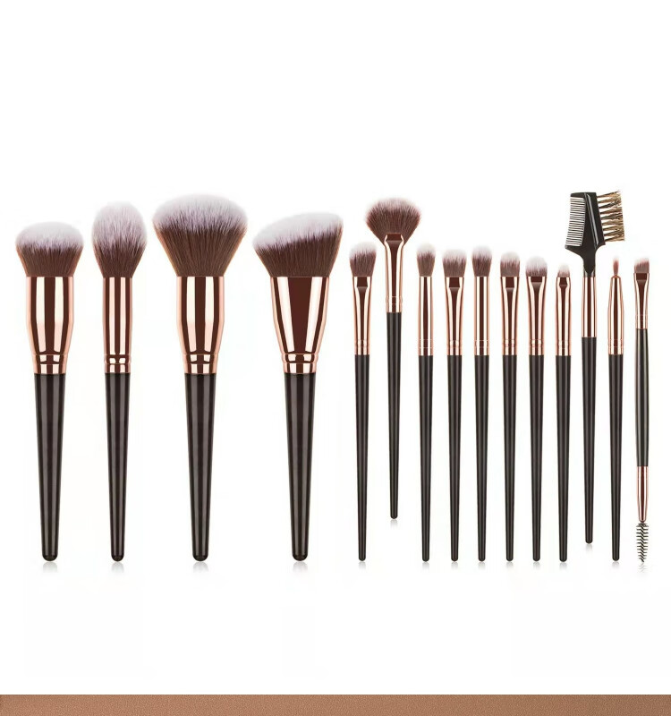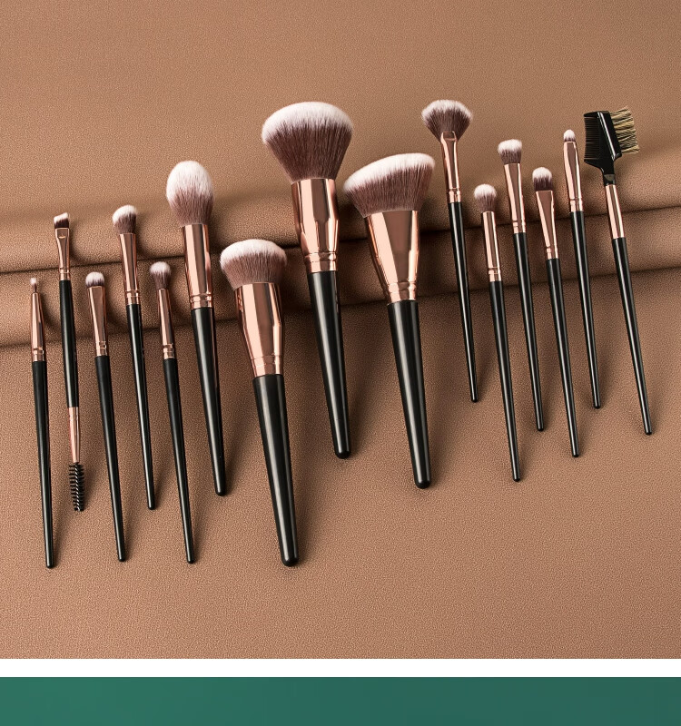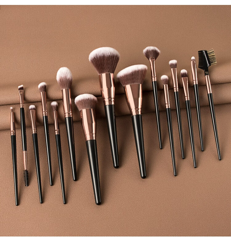 Portable makeup brush set 15 pcs for beginners eye shadow brush foundation brush beauty tools complete set of blush brush set 15 pcs black rose gold + brush bag 15 pcs black