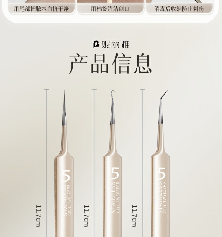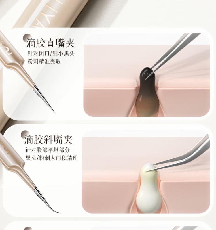 Nilia Superfine Glue No. 5 Cell Clip to Remove Blackhead Clip Tweezers Beauty Salon Special Closed Acne Scraping Needle Tool Professional Grade 0.01mm Straight Mouth Cell Clip 1