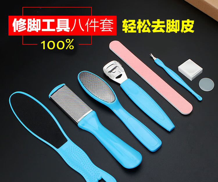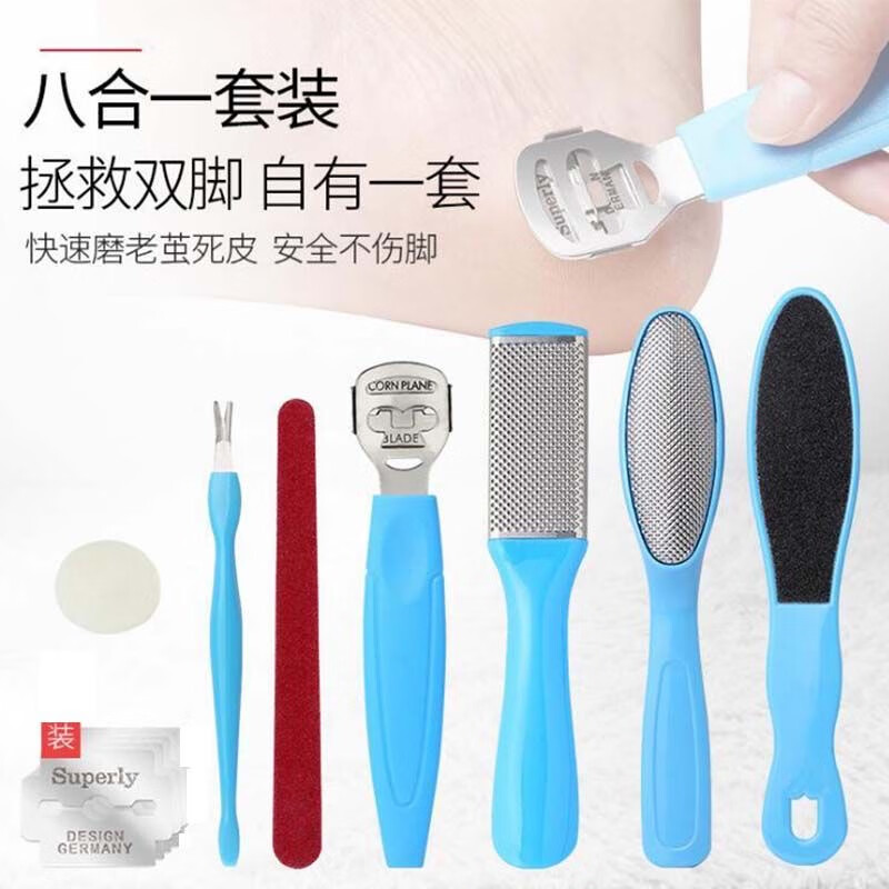 Foot grinder to remove dead skin, double-sided foot rub artifact set, remove dead skin, pedicure, remove calluses, remove calluses, rub feet and heels, blue pedicure 8-piece set, 1 piece