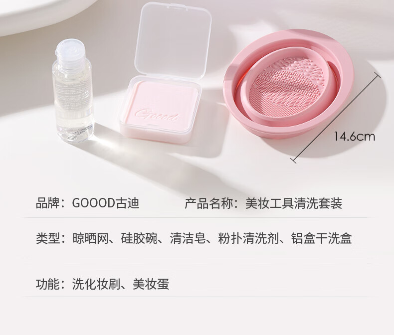 Gudi makeup brush cleaning bowl tool set beauty egg cleaning soap artifact powder puff cleaning liquid drying basket cleaning drying set (girly powder) 5 pieces