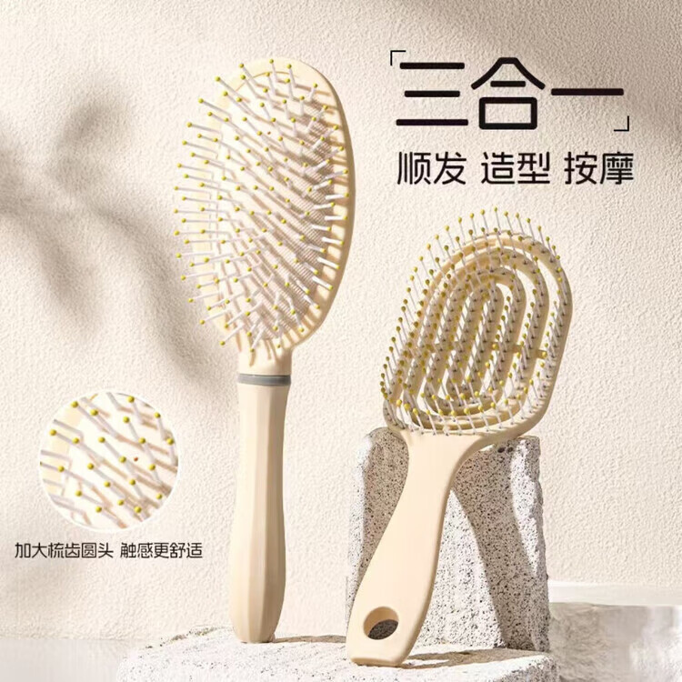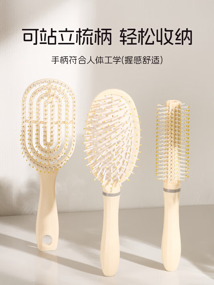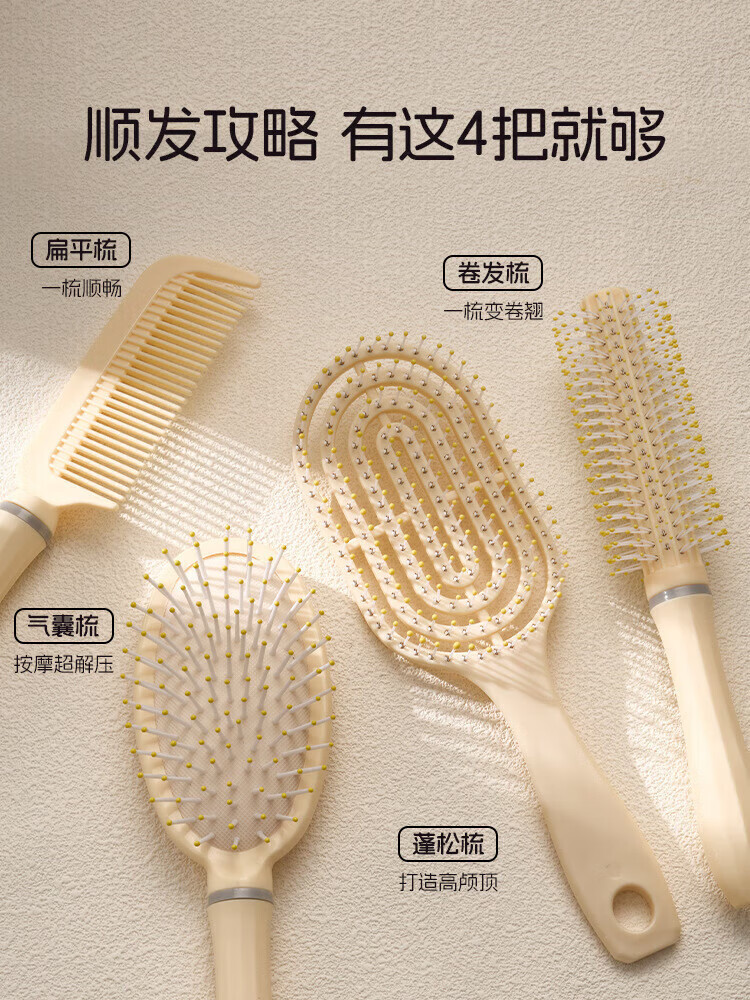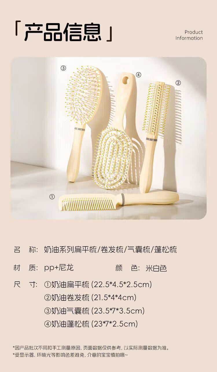 Fluffy air cushion comb long hair comb set combination air bag hair straightening comb student dormitory female household curly hair massage comb rib comb 1 piece pack cream white