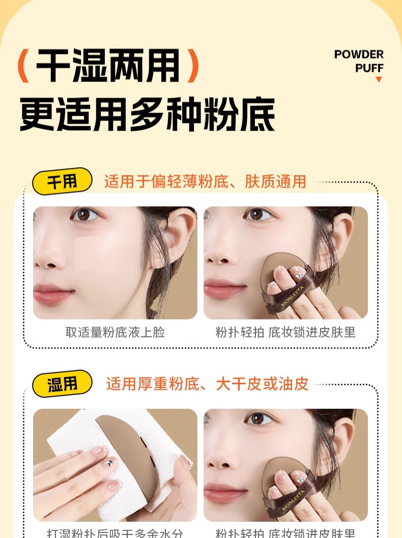 Manlita Air Cushion Powder Puff, Specially Used for Liquid Foundation, Super Soft, Non-Eating, Wet and Dry Use, Egg Setting Sponge, Reversible, Coffee Color + Black, Free Storage Box + Cleaning Liquid, 4 Pieces, No Specifications