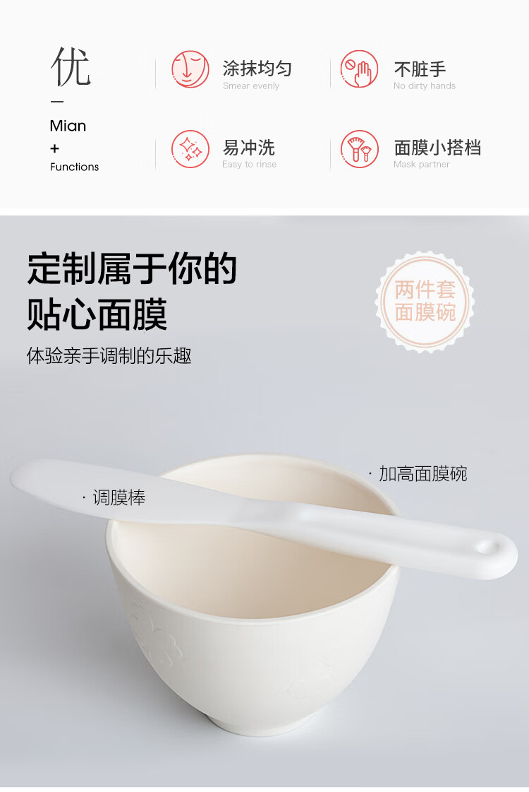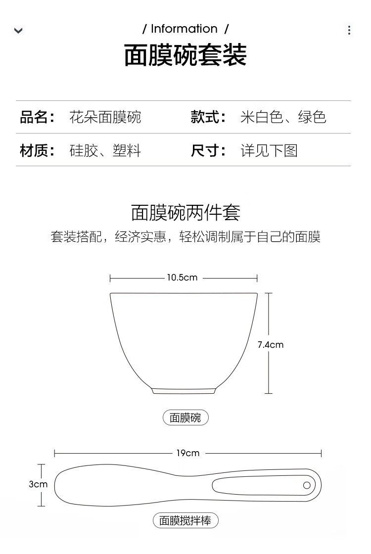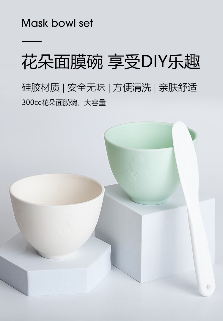 UHC facial mask bowl set 2-piece set facial mask brush stirring stick soft silicone bowl makeup tools for skin management pink bowl + pink large stick printed flowers 1 piece