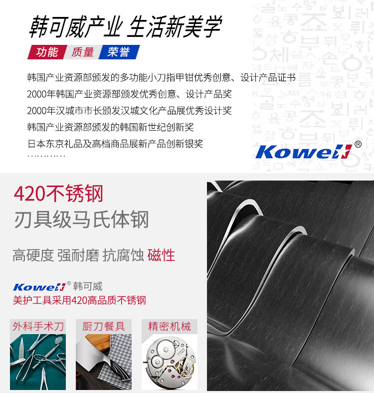 South Korea Kowell nail clippers stainless steel nail clippers personal care grooming combination 4-piece set KB401 gray