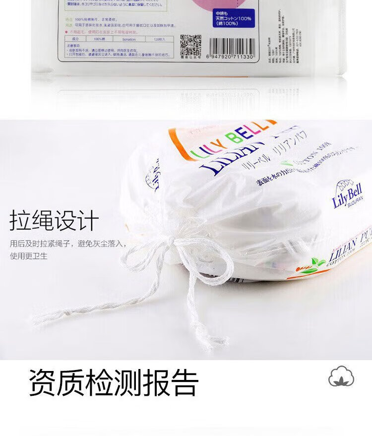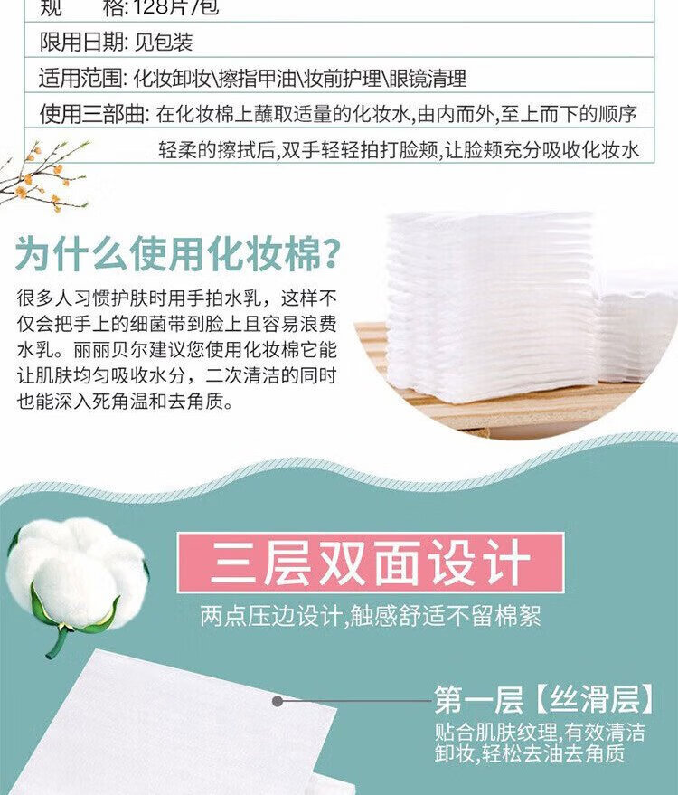 LilyBell 100% Cotton Makeup Remover Cotton Wet Cleansing Cotton Pad 128 pieces