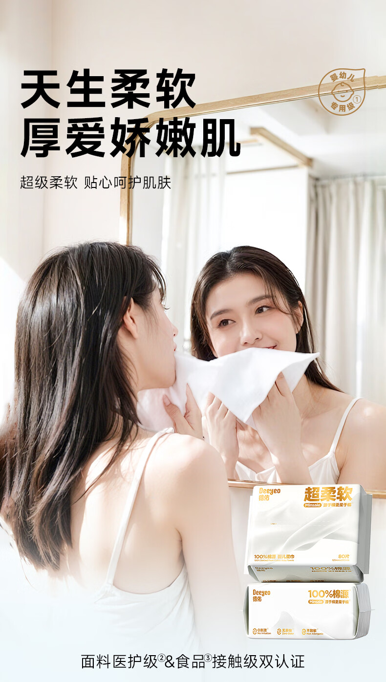 Deyou super soft cotton soft towel 100% Xinjiang cotton source facial cleansing towel dry and wet dual-use makeup remover cotton wet compress cleansing towel regular style 80 pumps 1 pack trial pack