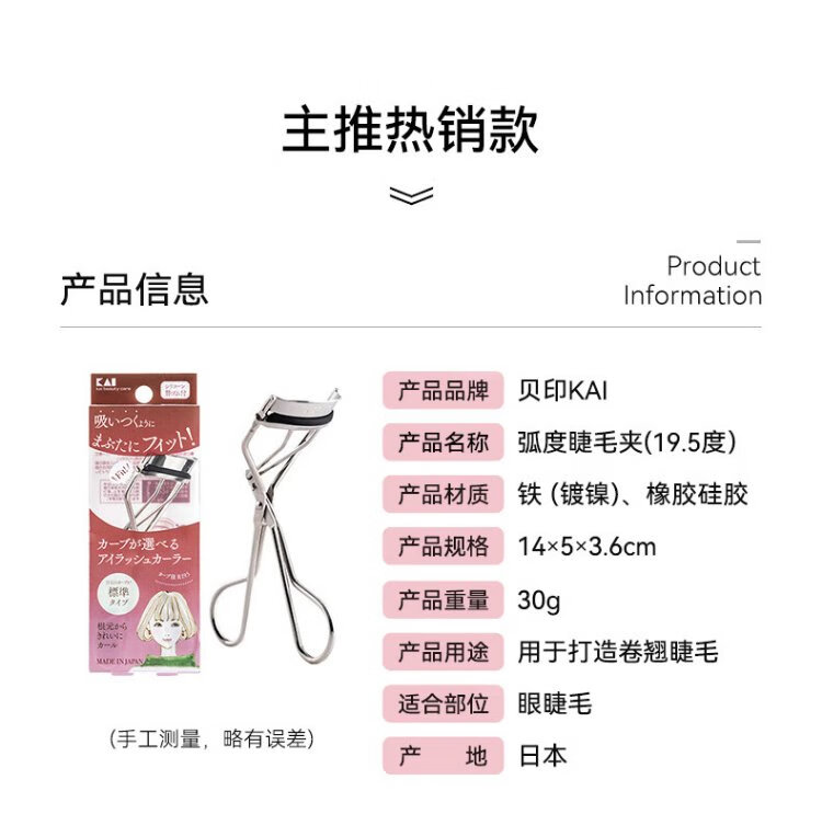 KAI imported from Japan, curved eyelash curler (19.5 degrees), long-lasting curling, eyelash curler does not damage eyelashes