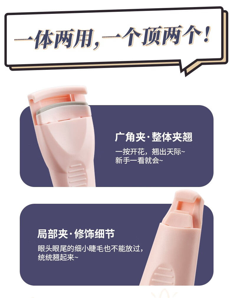 Fanling 2023 new style eyelash curler portable wide-angle partial modification dual-purpose curling long-lasting styling beginner eyelash curler Sakura Pink (dual use) (DE131)