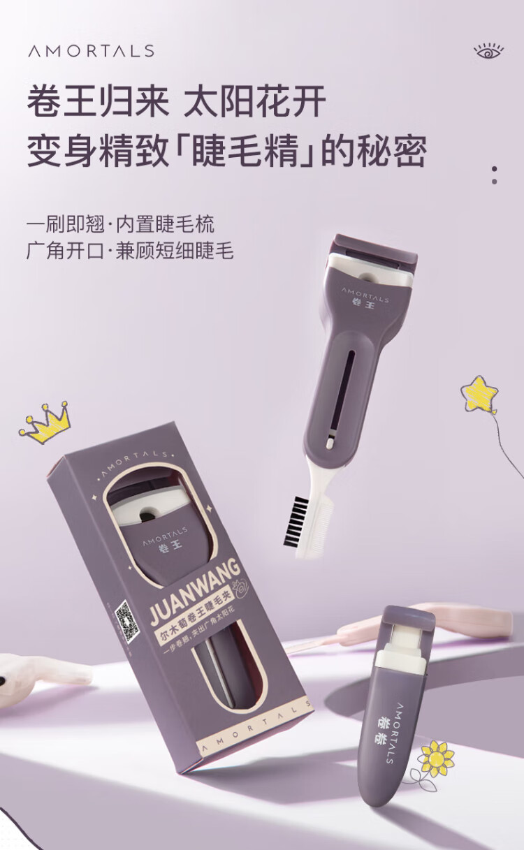AMORTALS Volume King Eyelash Curler, long-lasting curling and styling, portable for women with brush, sunflower partial segmentation, one-clip styling, Feitian Curling Eyelash Curler, 1 piece