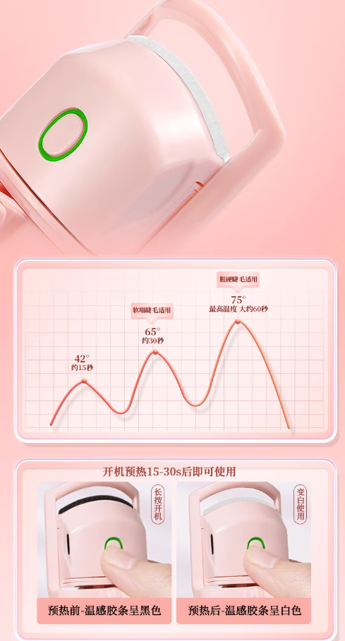 Nikki Bear Electric Eyelash Curler Long-lasting Styling Heated Eyelash Curler Naturally Not Easy to Collapse Eyelash Curler Rechargeable Adjustable Pink 1