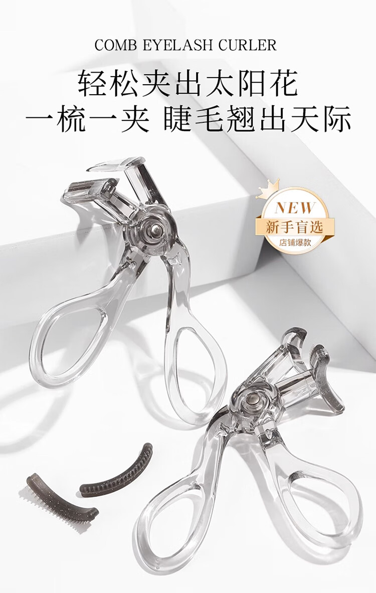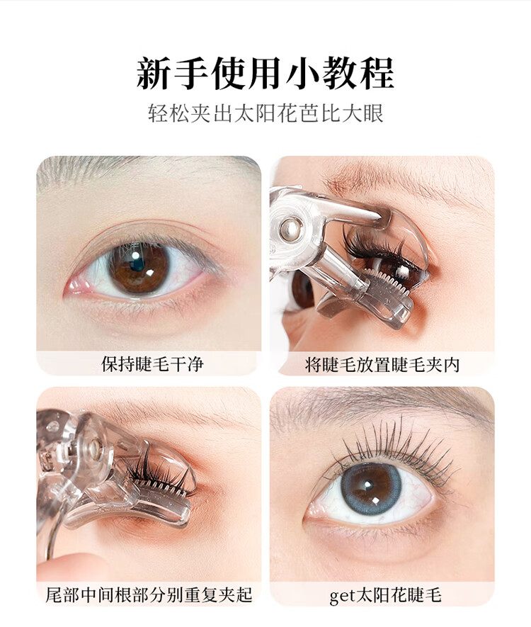 A curling comb wide-angle strip eyelash curler frameless transparent makeup long-lasting sunflower eye for women eyelash curler + mascara + eyeliner 1 piece