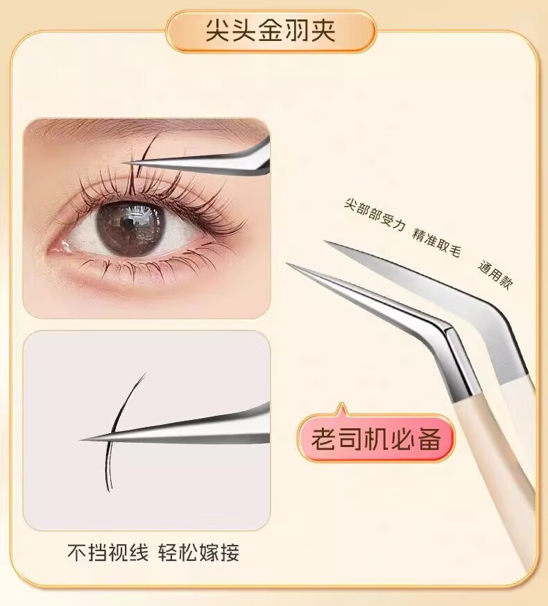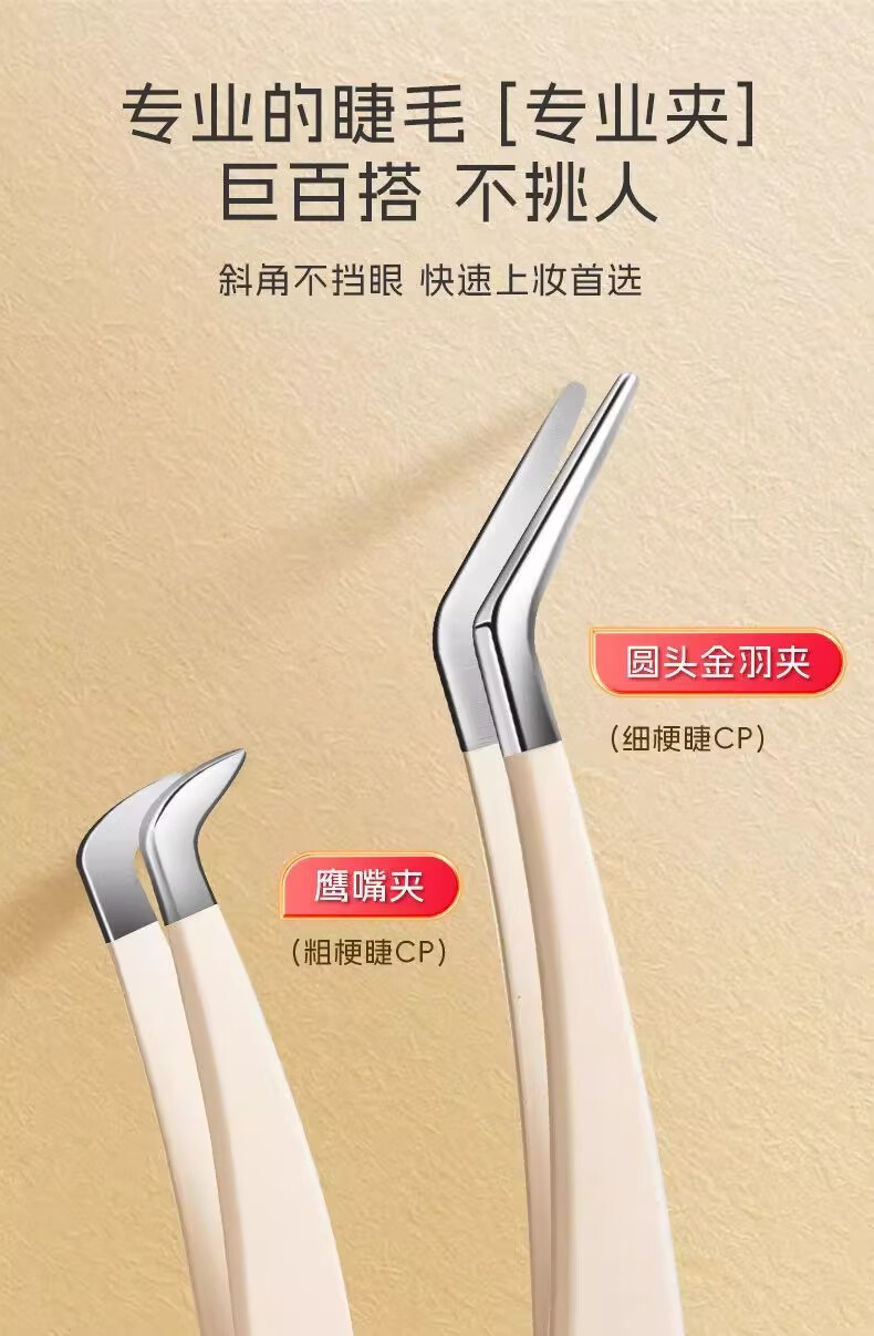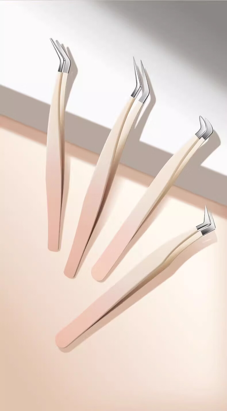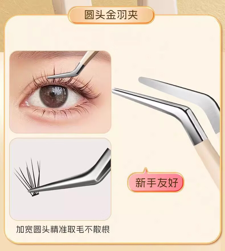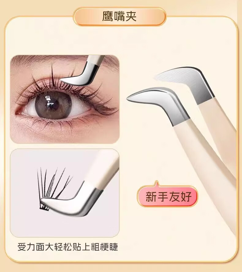 High-precision false eyelash tweezers for grafting beginners hawk beak eyelash tweezers round head gold feather clip entry tool gradient pink poppy 1 piece