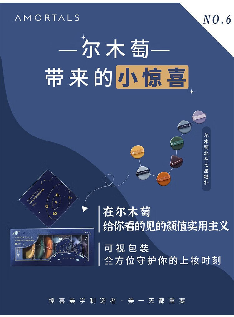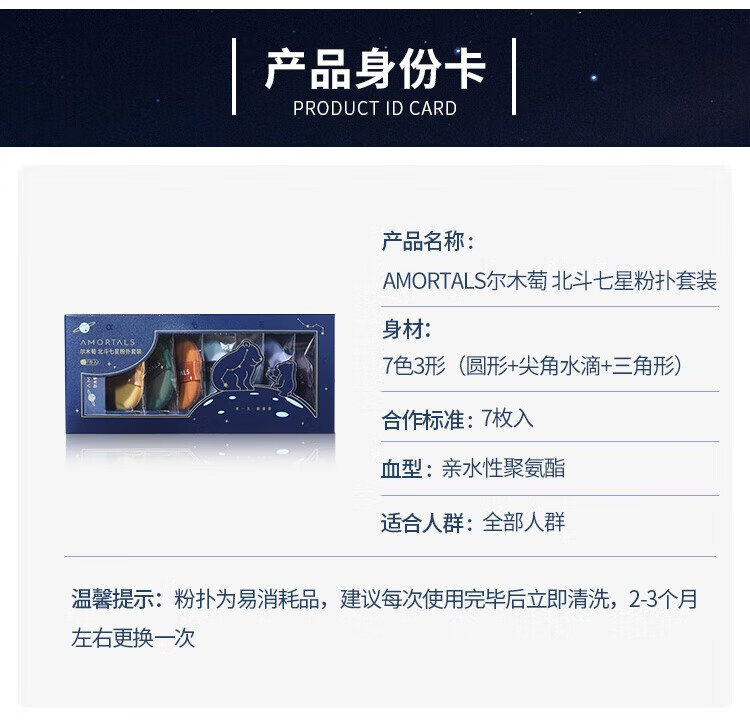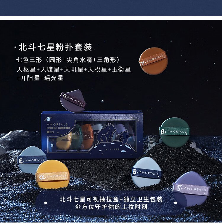 AMORTALS Air Cushion Powder Puff Cosmetic Egg Big Dipper Set of 7 pieces, wet and dry, not easy to eat powder