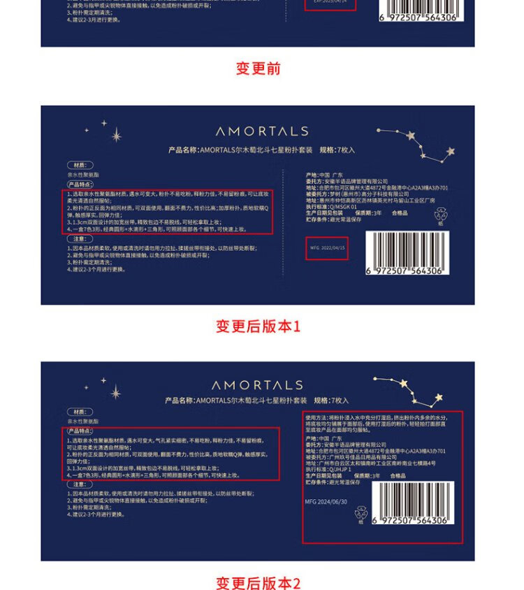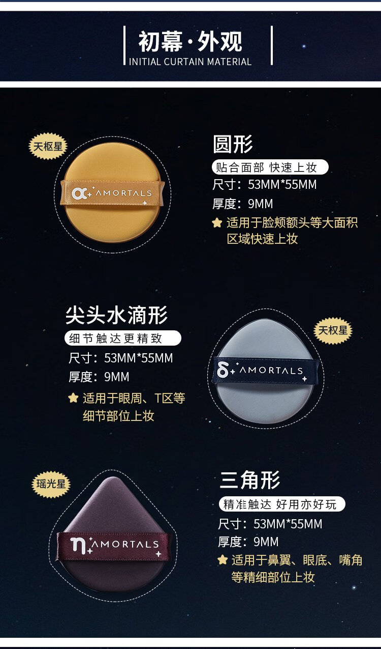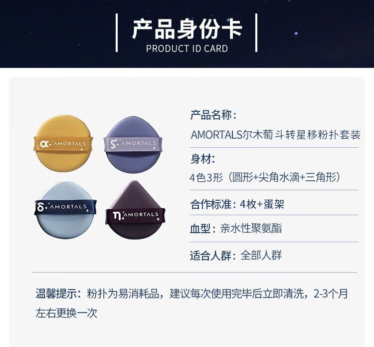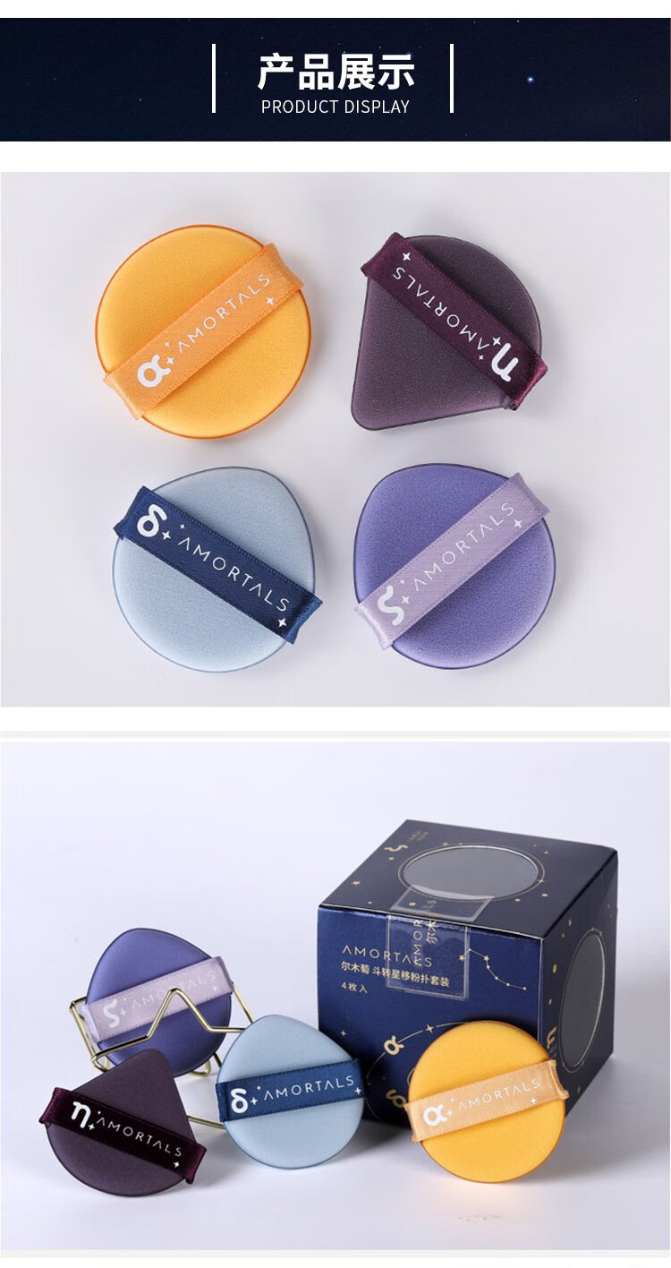 AMORTALS Dou Zhuan Xing Shi Air Cushion Puff Set Beauty Foundation Puff 4 Pieces + Holder Wet and Dry Holiday Gift
