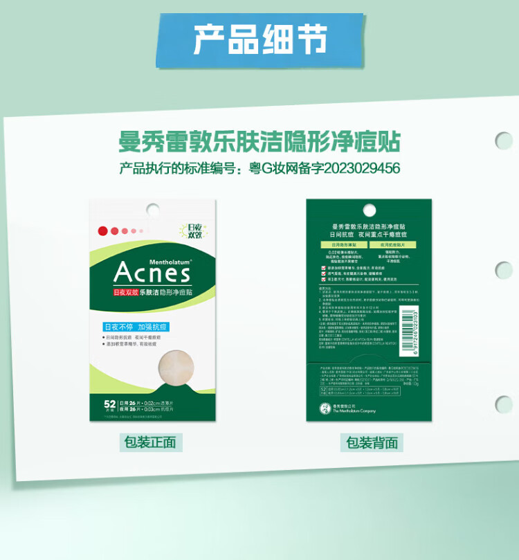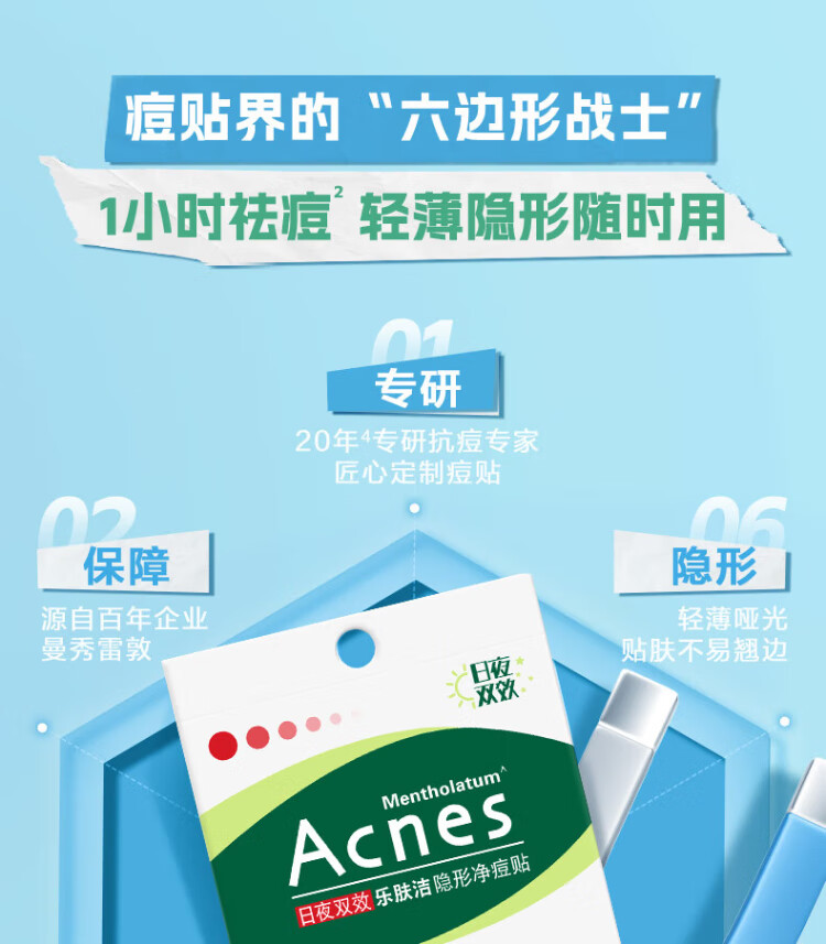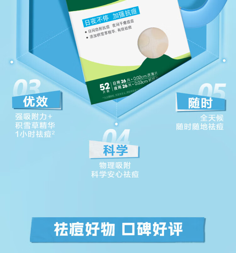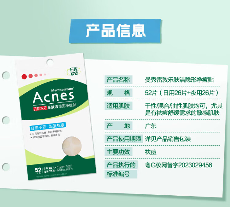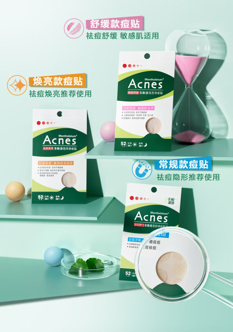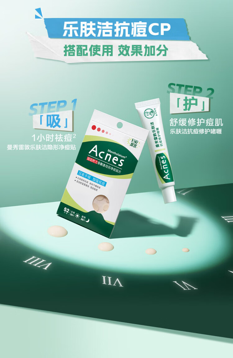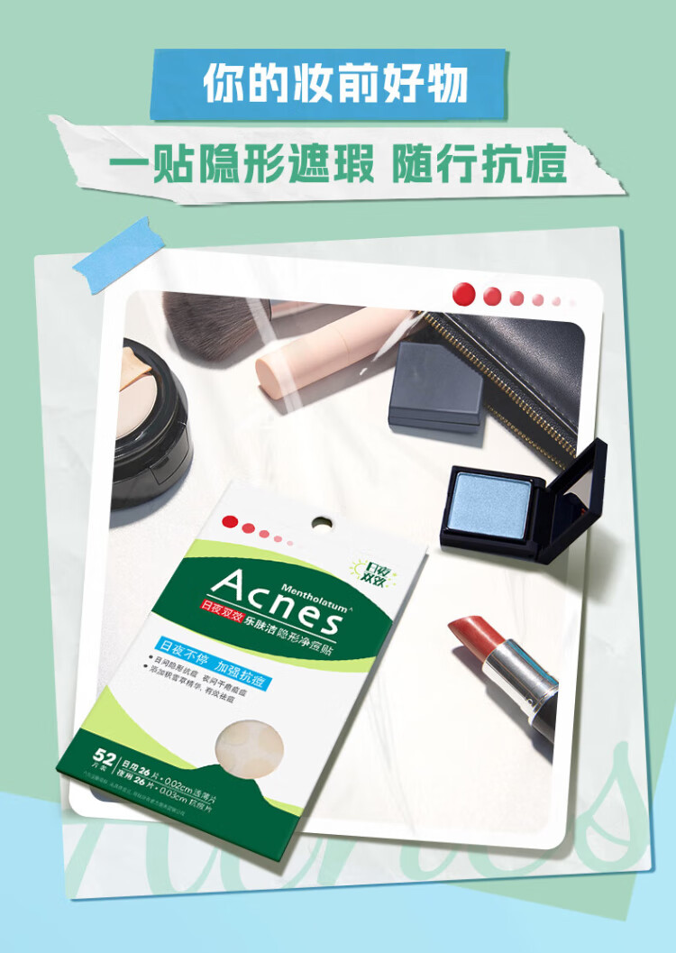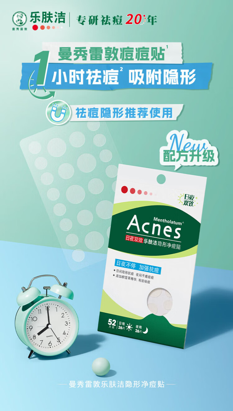 Mentholatum Lefujie Invisible Acne Patch Concealer, Anti-acne, Acne Removal, Day and Night Dual Effect 52 tablets, Pus Suction Invisible Dating Artifact for Girls
