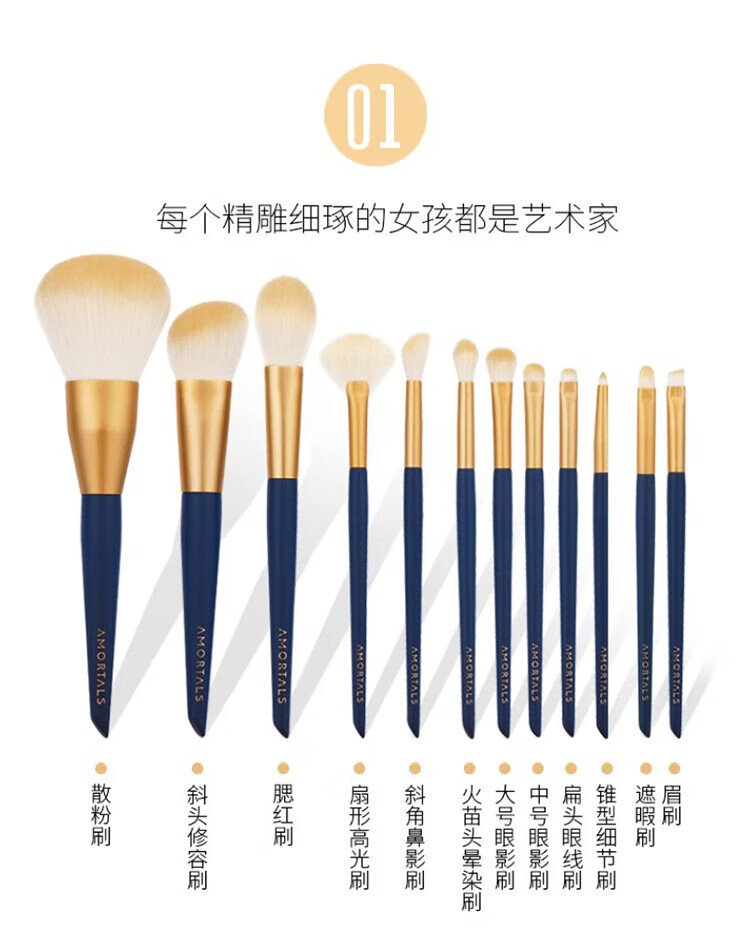 AMORTALS Star Makeup Brushes 12 pieces (Eye Shadow Brush, Powder Brush, Blush Brush) Portable Beauty Tools Holiday Gift