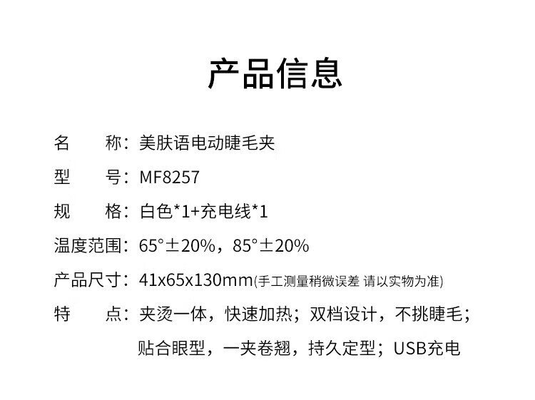Beauty Skin Electric Eyelash Curler Electric Eyelash Curler Heated Long-lasting Eyelashes Rechargeable MF8257