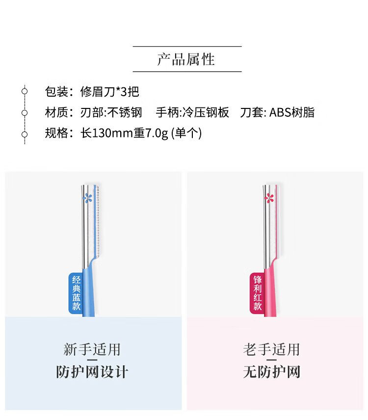 Beiyin Imported Safety Eyebrow Trimmer 3-Pack, Protective Net, Does Not Harm Skin, Can Be Used by Novices