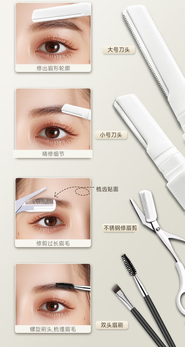 Sharp Japanese eyebrow trimming knife for women and men, eyebrow trimming scissors, eyebrow brush set, eyebrow trimmer, anti-scratch