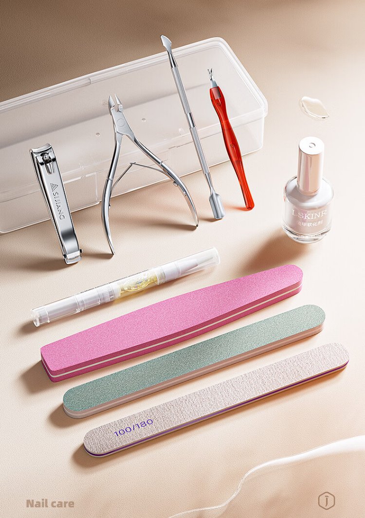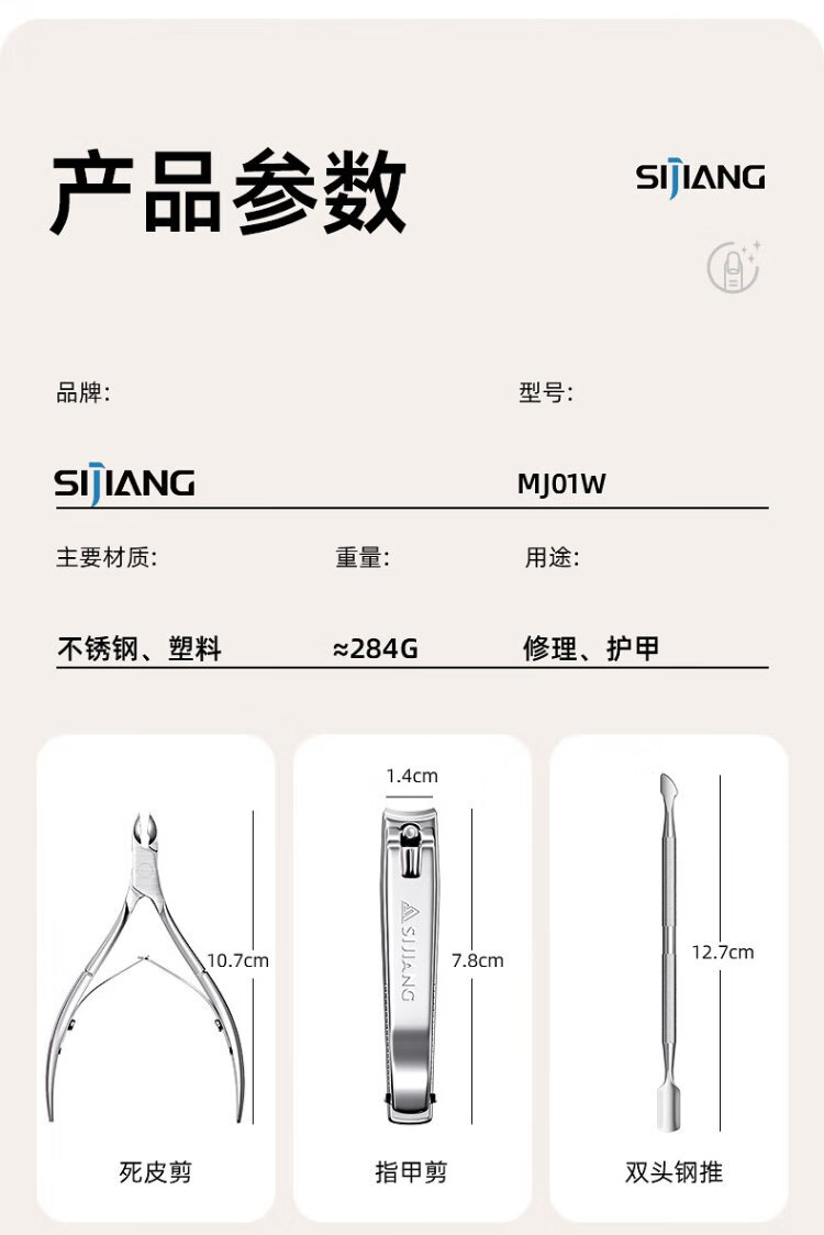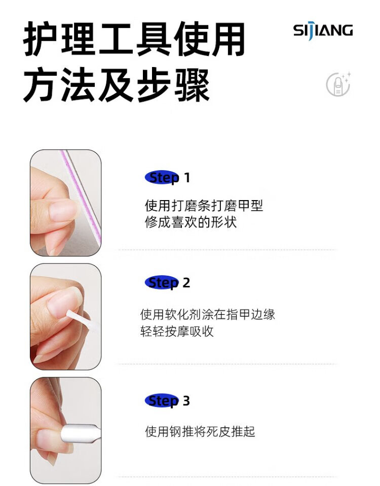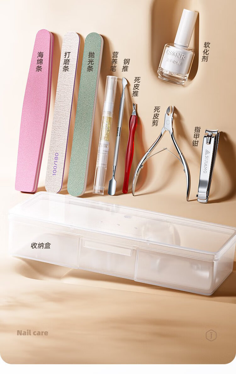 Sijiang stainless steel dead skin shears V-shaped trimming exfoliating trimming strip nutrition pen softening oil manicure tool 9-piece set