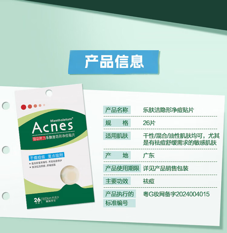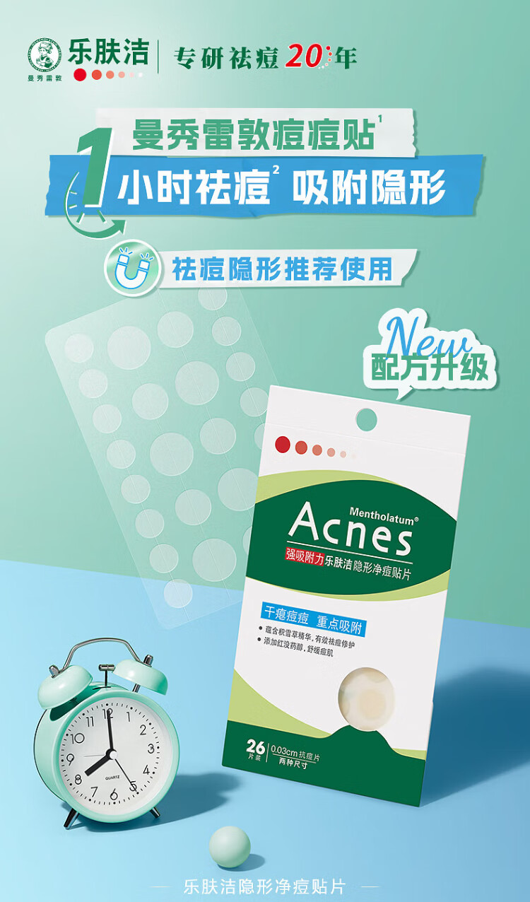 Mentholatum Lefujie Invisible Acne Patch, Light Concealer, Anti-acne and Anti-acne Patch, 26 Pieces Facial Mask to Absorb Pus, Dating Magical Device