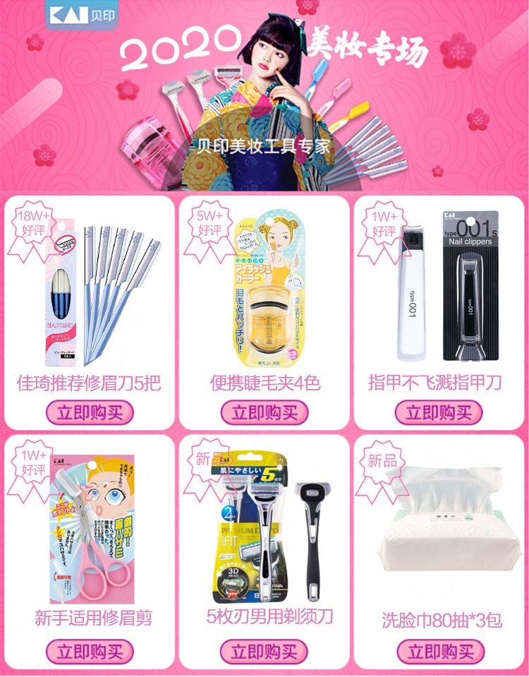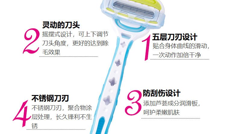 Kaiyin (KAI) imported from Japan women's 5-layer shaver private armpit hair shaver 3 pieces without sting